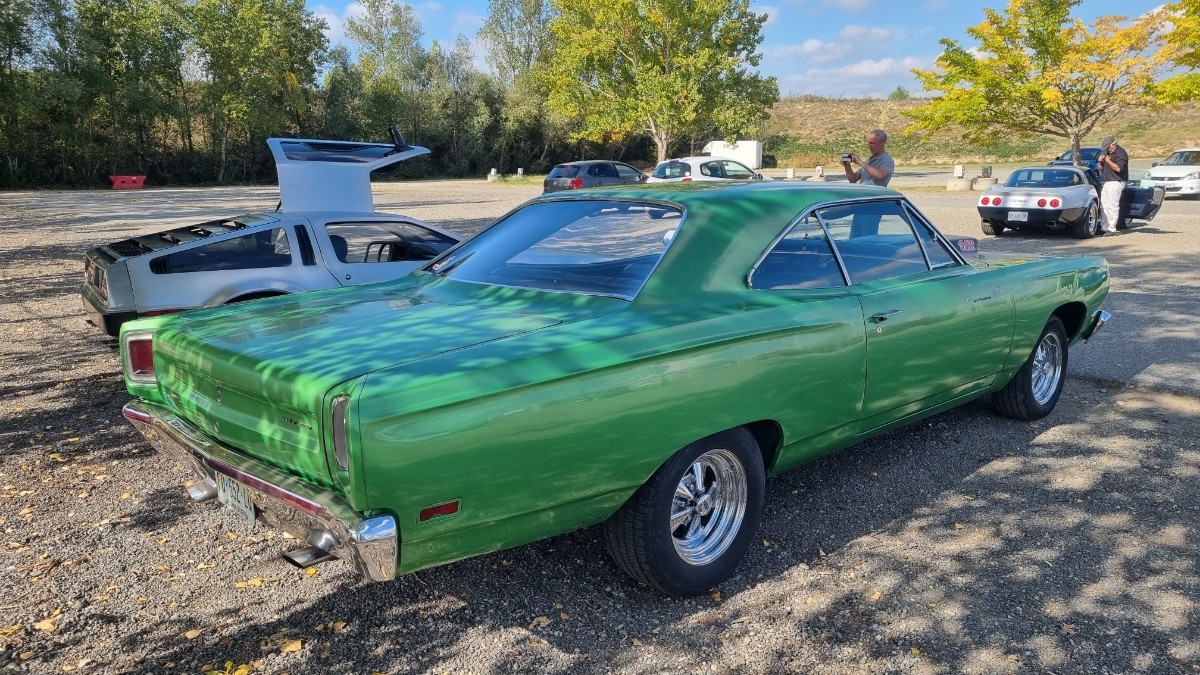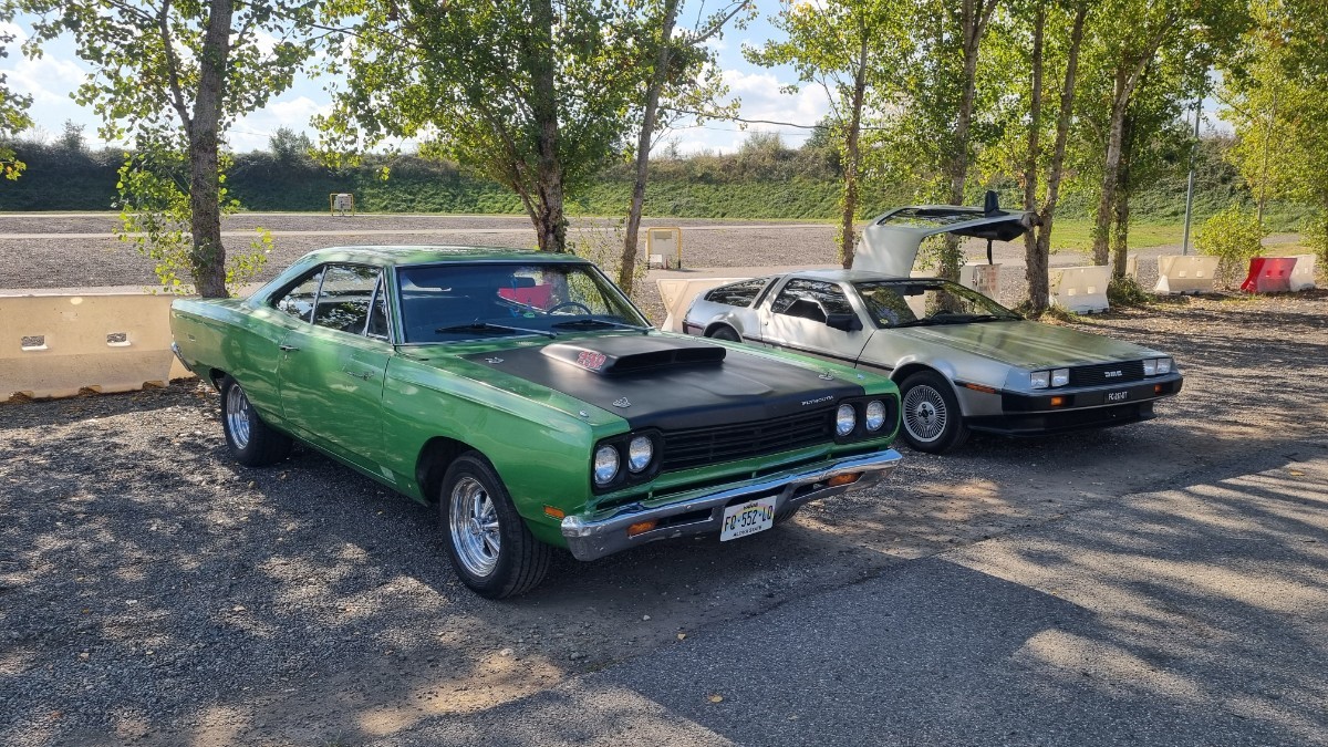 Bonsoir , voila quelques nouvelles de la Dodge . Il y a deux semaines un ami me contacte pour me dire qu'un chanteur cherche des voitures américaines des années 70 pour faire son nouveau clip vidéo et il lui a parler de ma Dodge et il était intéresser. Et cela ce passe au circuit de Muret . J'en ai aussi parler a @Sally1979 pour savoir si elle voulait aussi y participer avec sa Camaro . Pour ma part je ne savais pas trop parce que ça ce passé un mardi après-midi et que je travaillé , puis j'avais la crainte de savoir ce que l'on aller nous dire de faire avec les voitures . Finalement aprés quelques renseignement j'accepte , et nous voila a Mardi 14 octobre . Il y avait donc ma Dodge , la Camaro de @Sally1979 , la Road Runner du pot Xavier ( la personne qui ma demandé si je voulait venir avec la Dodge ) , 3 Corvette C3 , une Corvette C2 cabriolet , deux autre Camaro fin 70 , une Delorean et une Triumph . Les voitures ont était trouvé en moins d'une semaine pour tourné le clip Mardi après-midi . Personnellement je ne connaissais pas ce chanteur et ce n'est pas le style de musique que j'écoute , mais il a était très sympas et toute l'équipe aussi . C'étais asse marrant de voir l'envers du décor , a la télé il y a que les personnages de visible mais derrières la camera il y a une quinzaine de personne . Les scènes sont faites 4 ou 5 fois même si la première scènes est bien , puis ils refaisait la scène avec le drone avant de continué . La chanson est déjà disponible mais le clip sera terminé et passera a la télé en début Novembre . Pour ma Dodge , ils voulait attendre que le soleil ce couche un peut pour faire les scènes pour que l'on voit davantage les gyro , puis ensuite ma Dodge a tourner de Nuit . Manque de chance , ça fait 4 ou 5 ans que j'ai la Dodge , je n'ai jamais était embêté par les gyro , et la pour la dernières scènes pour une course poursuite ( course poursuite entre 3 et 5 km/h ) le fusible des gyro principal lâche , pourtant ils n'ont pas tourner tant de temps que ça . Du coup j'ai fait avec les petits gyro rectangle sur la façades du gyrophare , et pour clore le spectacle , j'avais une ampoule de phare avant qui avait grillé quelques jours avant et je ne m'en rappelais plus . Je verrai bien ce que ça donne . Voici quelques photos La première voiture a avoir été appeler , la Corvette C3 Daytona noire , pour les première scène Puis ensuite viendra la Camaro de @Sally1979 , suivi de la Corvette C2 Un cours extraits de la musique pendant une scène filmer par drone 20251014_155613.mp4 Puis arrivera une courte scène avec la DeLorean 20251014_161706.mp4 La Road Runner de Xavier avec le chanteur a bord en passager