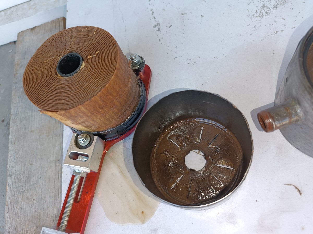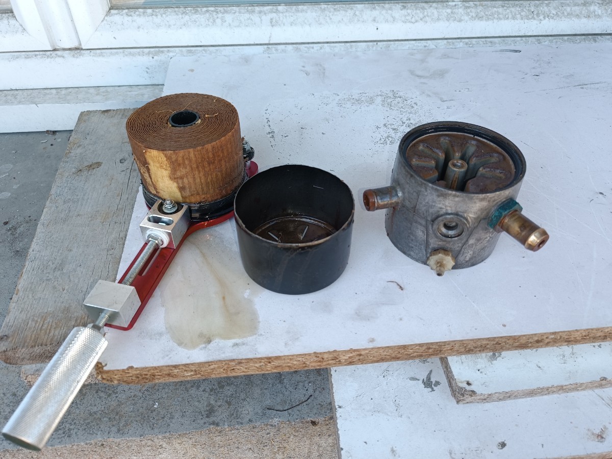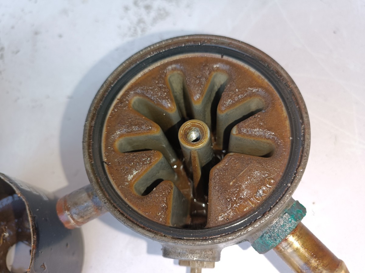 Salut à tous, encore quelques travaux aujourd'hui, réglages, modifications... J'ai remplacé le filtre et le système de filtration Européen ajouté par l'ancien propriétaire, par un autre modèle ( dont j'ai du stock... ) Voici donc en images un des soucis récurrents de ces Olds Diesel , et de toute américaine avec les anciens réservoirs en acier : par curiosité j'ai ouvert le filtre pour contrôler l'état : Intégralement colmaté par la rouille du réservoir. Comme d'habitude, remplacement du réservoir à prévoir... Concernant la voiture, et son moteur "malade", j'ai décidé de le rendre "utilisable" le temps de préparer mon autre bloc DX dispo sur une épave. Démontage en cours sur cette donneuse : -