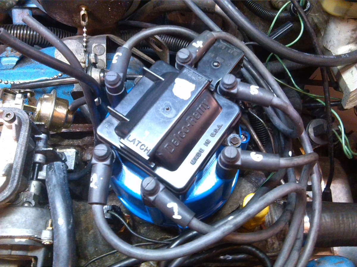 Bon ça se complique un peu pour le moment, j'ai acheté chez mon garage US (Parts Plus) Val d'Oise un chapeau et un rotor d'allumeur. J'ai tout bien reposé, j'ai mesuré la bobine tout est Ok en primaire (0,5 ohm) et secondaire (7K ohm) le noyau aussi (envi 7.5K ohms) la bobine magnétique (700 ohms) donc ok, j'ai déposé le module que j'ai mesuré en position diode (0.7V) donc Ok, une fois tout reposé la première fois ça a brouté et ça a tourné 2 secondes mais démarre pas vraiment, j'ai constaté une petite erreur de branchement entre le fil bougie 5 et 6, j'ai corrigé rien à faire démarre pas, j'ai tout re démonté 3 fois, tout re mesuré 3 fois rien à faire. Je précise qu'une fois déposé la moteur n'a pas tourné, le rotor a un détrompeur et la tête d'allumeur aussi, donc de ce côté là, j'ai juste déposé les petits ressorts et nettoyé les masselottes rien d'autre. Dans le doute j'ai été cherché un module d'allumage dans mon garage qu'il m'a prêté pour tester je l'ai changé, rien à faire. Le +12v arrive bien à la bobine (j'ai mesuré) J'ai même remis l'ancien chapeau ça démarre pas plus, elle sent l'essence mais c'est tout. Là je cale un peu, si vous avez des trucs de métiers je prends, en attendant je continue de chercher et de trouver la prise OBD... -