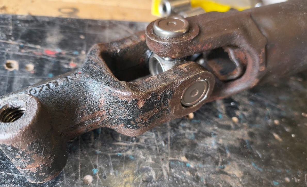 2. Cette saloperie de cardan est un problème, je n'ai pas réussi à remonter le croisillon sans le détruire. J'ai commandé des croisillons de taille équivalente mais à priori c'est un peu trop serré. En tout cas je n'arrive pas à remonter les roulements car il faut les insérer à la presse et une fois la cage dans le cardan, l'axe du croisillon rentre mal et force dans les rouleaux. Pb d'alignement ou cage un poil trop grand. Bref j'ai fusillé les 2 croisillons.