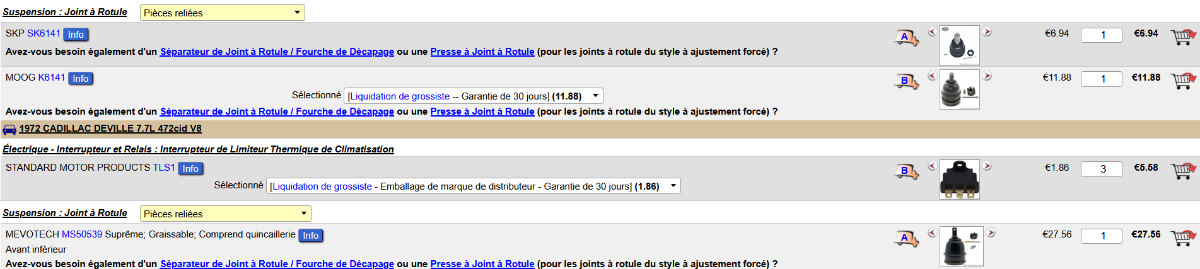 A forec de chercher, je ne sais plus quoi choisir: 1/ chez Rockauto c’est la valse des prix entre la recherche par auto et la recherche par numéro de pièce... 2/ chez Vintage garage, c'est 20,90 euros mais pas de douane et transport si je vais chercher... Je penche pour vintage garage mais que vaut aussi la rotule Rockauto à 6,94 euros dont les reférences collent aux autres ? - Today