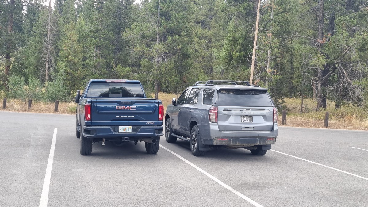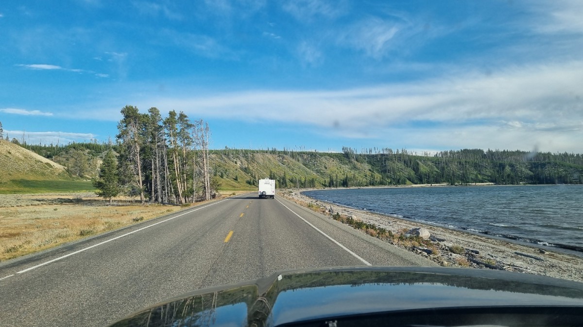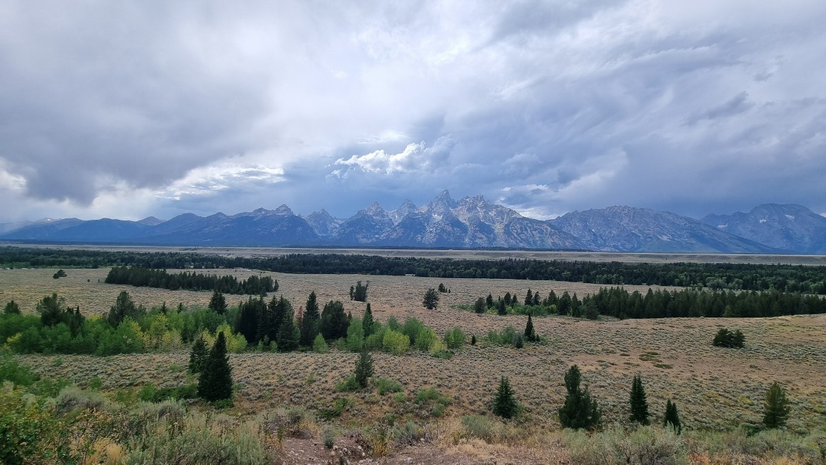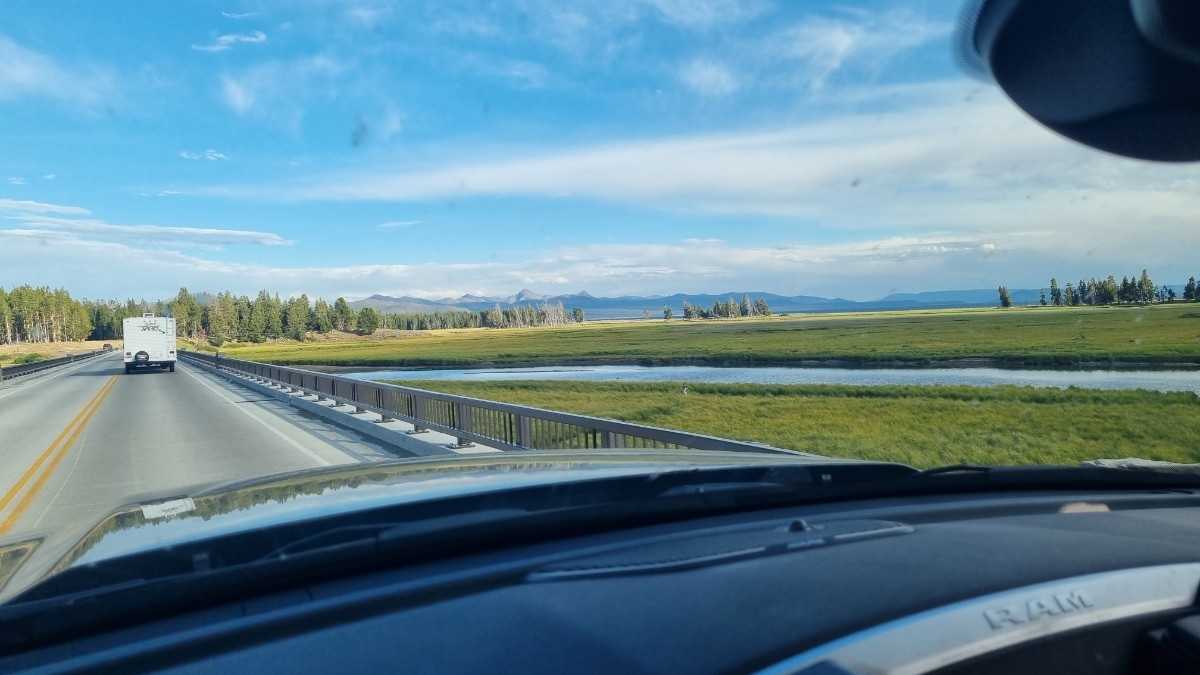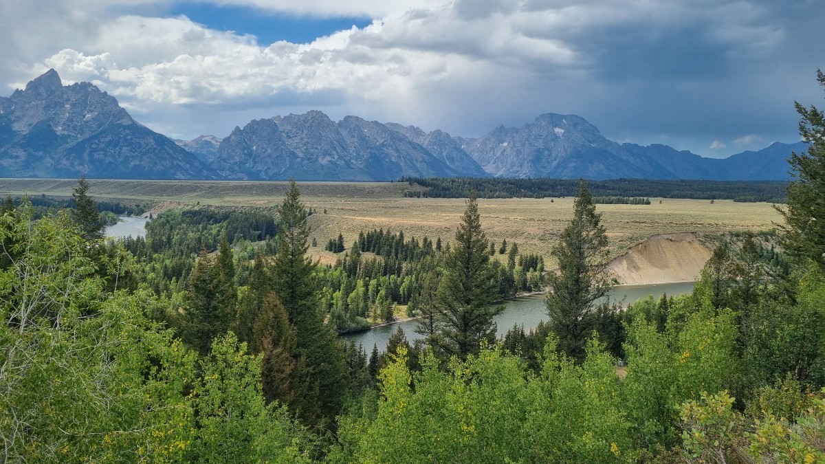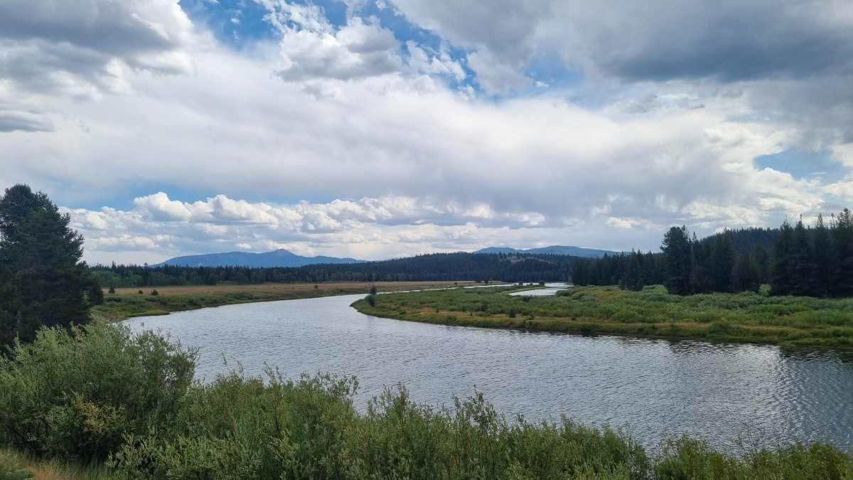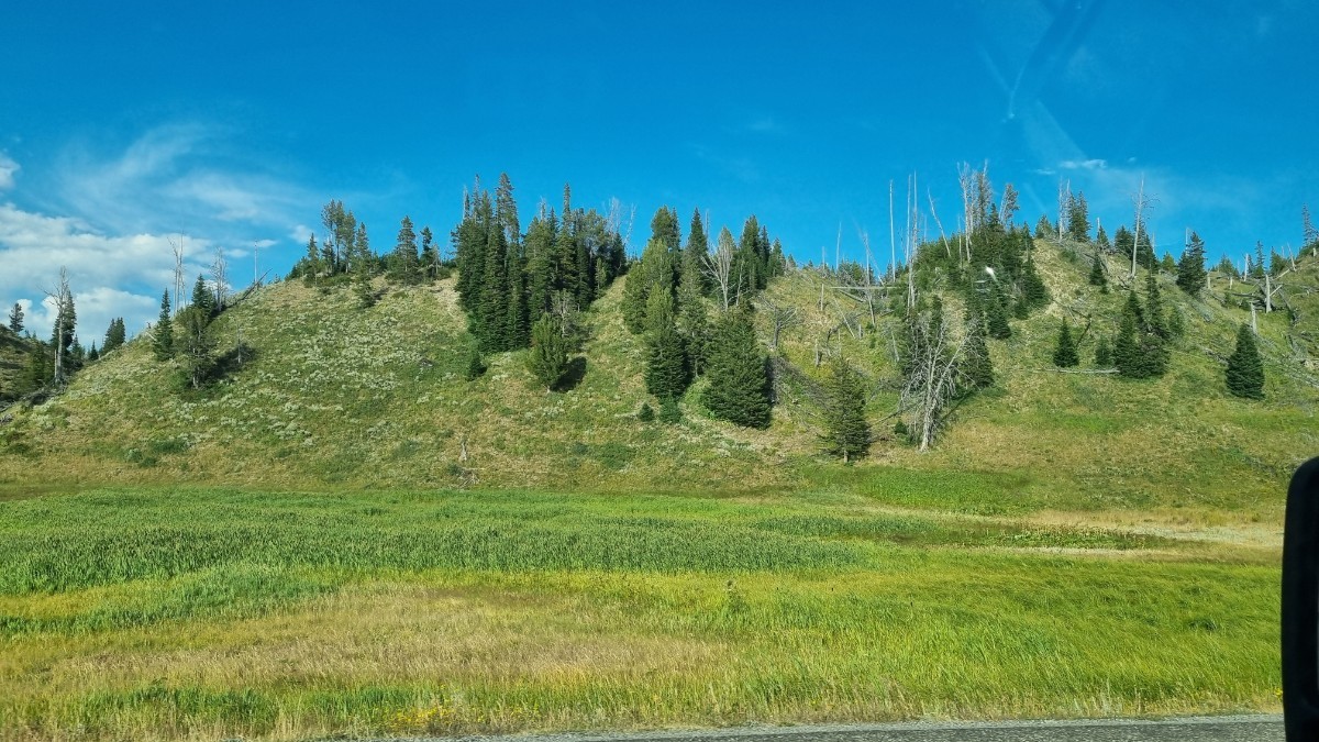 Bonsoir , voici la suite des photos de nos vacances au US Donc toujours au parc " Grand Teton " , avec le barrage J'adore ces paysages avec les rivières / montagne/ champs ... Des parking comme je les aimes , 100% US Dans cette zone il y a eu anciennement un gros incendie et on peut voir encore pas mal d'arbre mort 20250815_182552.mp4