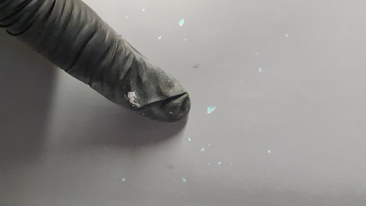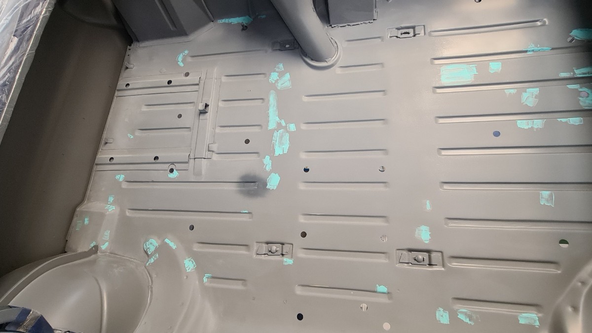 Comme le dit si bien Sébatien 01 "il y a de la surface et des recoins" Donc au bout d'un mois le ponçage est presque terminé. Et merci à Laurent qui se reconnaitra pour avoir participé à cette tache qui ne procure aucune satisfaction. Tout a été poncé au 400, les taches brunes sont des retouches à la bombe, aux endroits ou nous avons traversé les couches d’apprêts. Dans la malle, j'avais prit le choix de conserver le maximum du tôle d'origine. Même si elle n'était pas impeccable. De ce fait, il y a encore de petites retouches de mastic à faire pour avoir un bel aspect à l’œil. J'utilise un mastic sans durcisseur, qui sèche très rapidement. Ce produit est en général fait pour combler des rayures ou des éclats de peinture. Donc pour de faible épaisseur ou surface. Une fois poncé, voici par apport à mon doigt ce qu'il reste. Cela évite de tout défoncer pour obtenir une surface lisse. Il se présente en tube prêt à l’emploi. Ici c'est le 05096 de chez 3M. Cela existe depuis plus de 50 ans, parfois même les carrossiers peintres ne le connaissent pas.