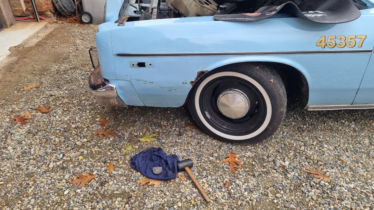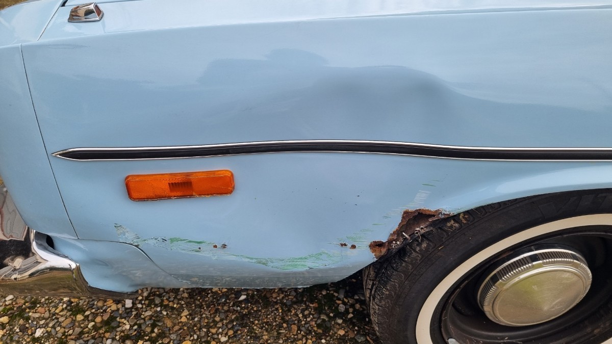 Bonsoir a tous , quelques nouvelles de la Dodge . Comme expliqué plus haut , il mais arriver un problème mais je vais re raconter depuis le début et remettre les photos poster plus haut pour que ce soit a la suite avec ceux que je vais mettre . Donc nous voila un vendredi soir , tout vas bien , on ce rend au Tommy's diner de Montauban Puis on partira vers 23h tout content dodge.mp4 Puis en rentrant a la maison , comme dit plus haut , j'étais garé sur le passage du portail . Le portail a double battant ce referme sur la Dodge parque que l'on a accidentellement appuyer sur le bip du portail et comme les cellule du portail ne fonctionne plus , le portail c'est fermé sur la Dodge . J'ai reculer brusquement pour éviter le portail et résultat j'ai fait plus de dégâts que si je n'avais rien fait . Ailes enfoncé Pre-choc tordu Veilleuse cassé Et l'endroit rouillé qu'avait peint des carrossiers dans le sud de la France a forcément cassé Débosselage du creux Puis décapage du bas de l'aile