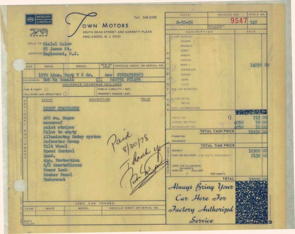 Voilà quelques photos avec la facture d'achat. Chose bizarre la date de 1ere mise en circulation de la carte grise est le 1er janvier 1978. Miracle de l'administration française!!!