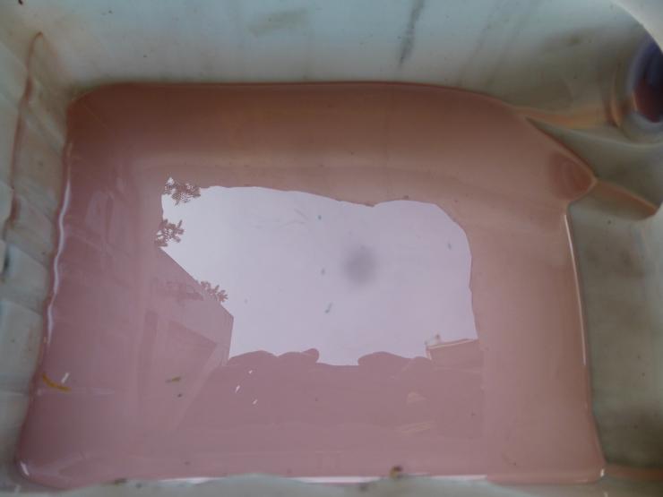Bon aller! Des news!!! Et elles ne sont pas très bonnes... Voici la couleur de mon huile de boîte... Et le fond du carter à une très sale gueule... Donc ma boîte est probablement out! Il y'a une contamination de l'huile avec de l'eau, probablement le serpentin dans le radiateur qui perd... J'ai essayé de purger la boîte en déconnectant la ligne qui va au radiateur, mais j'ai déjà passé 15 litres et pas encore de résultat. Évidement j'ai plus d'huile... Je vais encore passer 10 litres la semaine prochaine. Mais si rien n'y fait je vais devoir trouver un convertisseur pour la th200-4r qui est déjà dans le garage, mais que je n'avais pas prévu de monter cette année! Clastres la semaine prochaine est déjà quasiment à oublier...
