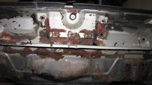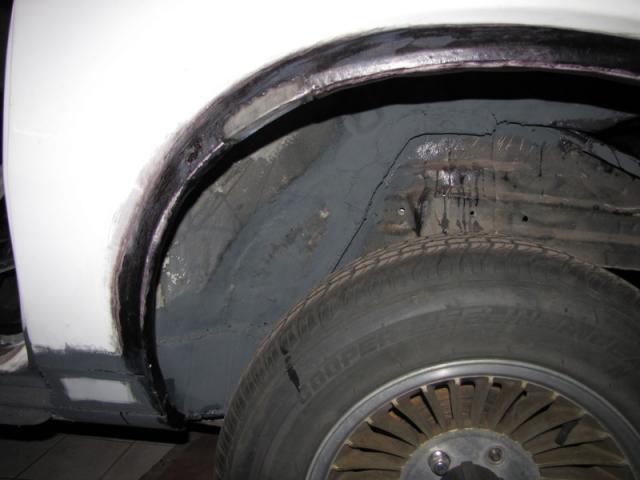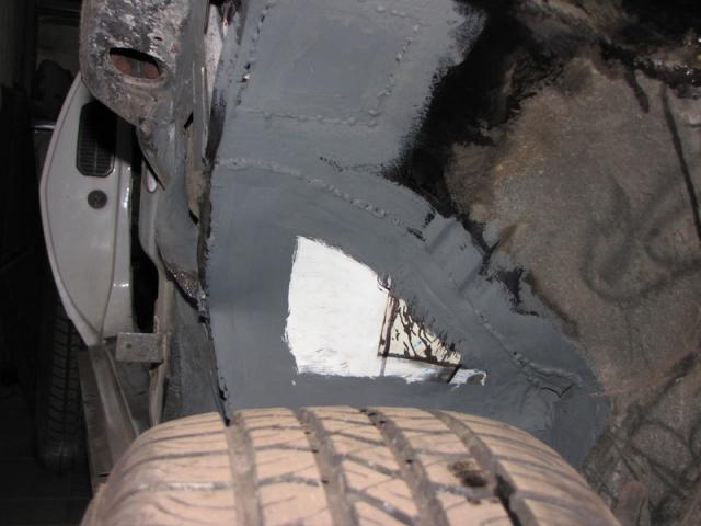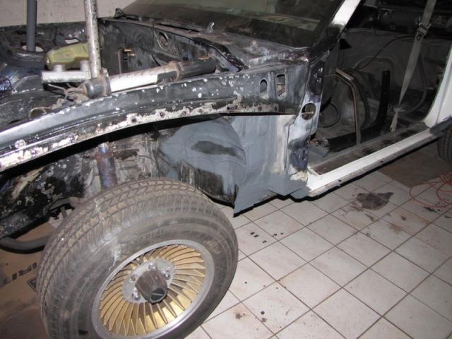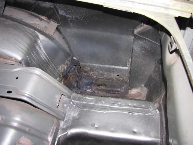 Salut Vla les dernières tofs. Du taf y a eu pour refaire un compartiment propre . Reste à le peindre avec une peinture noire brillante. La partie grise est de l'apprêt phosphatant. J'en ai mis après avoir fini de patcher et traiter les soudures. Ca, c'est le côté gauche aile arrière. le fond a déjà été changé à un moment mais quand ? j'ai viré le blaxon, poncé et traité Là, y'a encore du boulot. Le carrossier de m....e avait camouflé sous du blaxon et de la peinture l'emplacement de la roue de secours. Le fond est bien bouffé. J'ai déjà tout gratté et mis du convertisseur de rouille mais c'est pas fini...