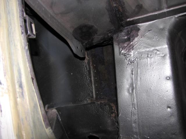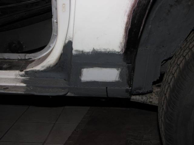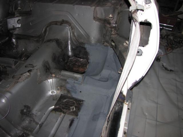 Salut. Aujourd'hui, j'ai terminé de passer de l'epoxy à froid partout. Les dessous des planchers, le panneau arrière derrière la banquette côté châssis, le dessous de la caisse à l'endroit du réservoir, les passages de roues avant, le panneau de coffre côté pare-choc ainsi que le dessous du coffre. J'ai posé du joint partout ou il y avait de la soudure mais c'est pas fini. Demain, je repeints le plancher intérieur pour une finition. Je ferai des tofs demain. Ha, une bonne idée pour dérouiller des petites pièces : vous trempez la pièce dans un bain d'acide chlorhydrique pendant 20 minutes, vous rincez bien à l'eau, et de suite après séchage, un coup d'apprêt phosphatant. Ça marche nickel. La rouille s'en va entièrement. Pas besoin de brosser comme un âne pendant des heures. Il faut passer l'apprêt vite car sinon, de la fleur de rouille réapparait au bout d'une demi heure voire une heure suivant l'humidité et la température ambiante. Reste à passer de l'antigravillon dans les passages de roues et sous la caisse d'ailleurs, vous en pensez quoi de l'antigravillon ?