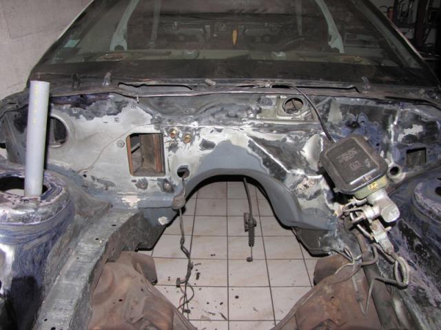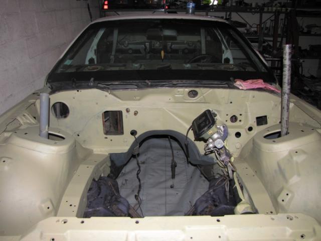 Salut Alors, ca y'est l'appret phosphatant est mis dans le compartiment moteur. Ca pue !! Mais ça accroche bien, c'est sur. J'en mettrai une 2ème couche demain sur les parties les plus exposées. Ensuite epoxy noir à froid. Ca devrait peter ! Je ferai des tofs demain. La, suis cuit