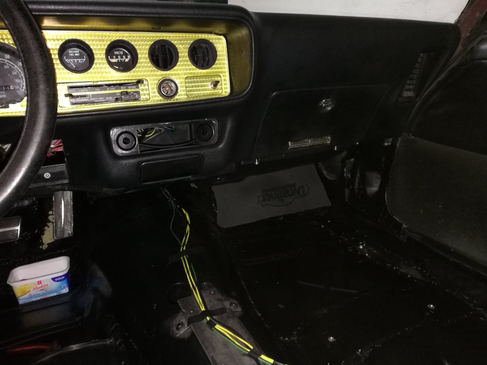 Moquette posée, console, ceintures, shiter B&M et accessoires, support de sieges. Reste plus que la trappe sous le volant qu'il faut que je répare et le cablage du dégivrage arriere. Petit kit électronique permettant de le déclencher avec un beau bouton poussoir qui s'allume en vert quand il est sous tension, le dégivrage à la place de l'ancien qui est introuvable