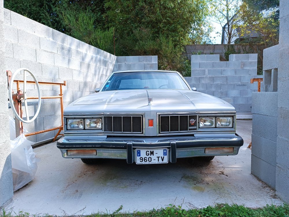 Bonjour à tous ! Quelques petites nouvelles concernant ma olds. Pas grand chose la concernant en fait ... Mise à part que j'ai commencé réellement à l'utiliser en mode ''trajets boulot". Un réel plaisir... Les travaux effectués sur le moteur ont portés leurs fruits. Il tourne comme une horloge, démarre au quart... Même après une longue immobilisation ! Les seuls soucis qui me dérangent pour une utilisation quasi quotidienne : - La BV un peu étrange ( je doit trouver le temps de faire la vidange) - les essuies glaces intermittents qui ne fonctionnent pas - les supports moteurs hs ( j'ai les pièces mais cela semble très galère à remplacer... ) bref j'adore cette voiture SEULEMENT... Son état carrosserie devient inquiétant, une mauvaise peinture qui part en lambeaux met en peril sa survie ( débuts de corrosion et certains points de rouille critiques... ) cela me tue... J'adore cette voiture et j'ai vraiment envie de la sauver. Seulement je ne sais pas si je vais y arriver... ( Pas d'emplacement pour le moment pour la protéger et "stopper" l'hémorragie...) DONC j'ai fait un choix ( pas celui que vous pensez 😅 j'accroche vraiment avec ce modèle, j'ai donc vendu ma fidèle R25 turbo DX ( des années et des années de travail ) Pour acheter : à votre avis... Une Delta 88 Royale Diesel... Propre niveau carrosserie celle ci ! 1979 ( j'aime moins ), une vraie US celle ci ( compteur en miles ) censée me "consoler" si je ne parviens pas à sauver la grise, elle est planquée au garage par contre, à la place de mon ex 25. Moteur "D" sur celle la, tourne moins bien que ma grise mais c'est normal ( faut s'en occuper ) La grise reste la priorité ( j'aime vraiment cette voiture ) mais sa remise en état nécessite désormais un dépouillement complet de la caisse, trop attaquée. En attendant la jaune me permettra de continuer de conduire ce V8 si attachant !