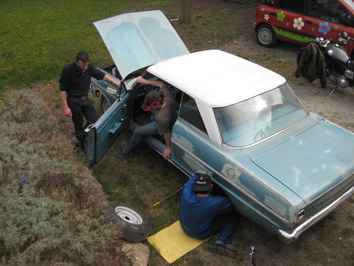 Des nouvelles de la Chevy ..... J'ai enfin remis la nova sur ces roues depuis avril 08 ou je démarrais la réfection de ma direction et des freins : Resultat à ce jour des travaux : Démontage de la direction pour remise à neuf. changement des machoires, des cylindres et des ressorts et des flexibles pour les freins avant + réctification des tambours. Changement des cylindres arrières et des ressorts, mais j'ai du remettre les vieilles machoires, car avec les nouvelles impossible de remettre les tambours. après avoir tout remballé et remonté les roues, j'ai appelé un pote pour la purge des freins : une fois fait, une petite ballade avec test de frainage pour voir le resultat de mon bricolage. deux constats : 1 - çà freine pas très fort et j'ai toujours un déséquilibre au freinage. 2 - j'ai un déséquilbre dans la direction encore plus conséquent qu'avant...... Aurais je fait tout çà et perdu ce temps pour rien. finalité : Rendez vous chez mon garagiste local (passionné lui aussi de ricaine). par contre, après presque 4 ans de stationnement, elle roule à merveille et quel plaisir cet après midi lors de cette petite promenade.....