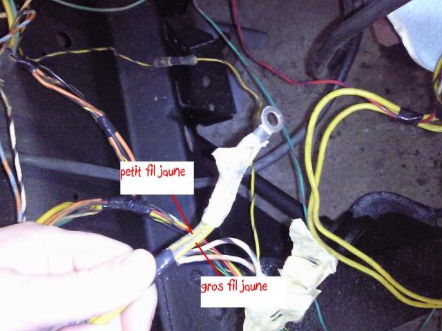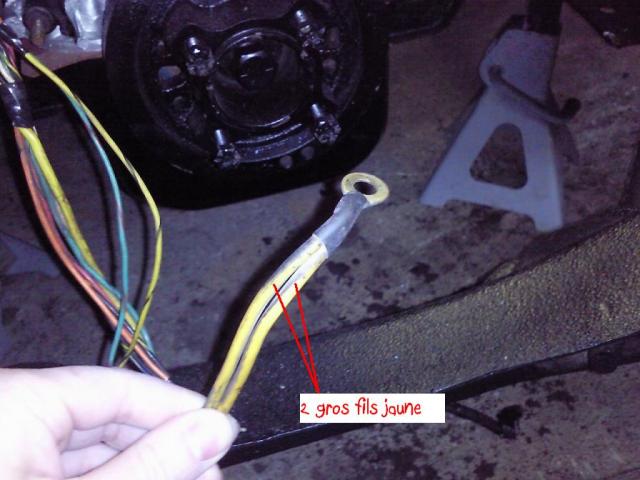 La photo où on voit le petit et le gros fil jaune, de mémoire il va sur l'alternateur...