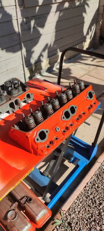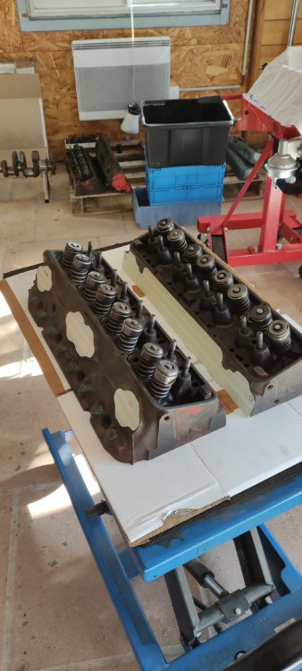 11. Culasses nettoyées, soupapes rodées, en attente peinture