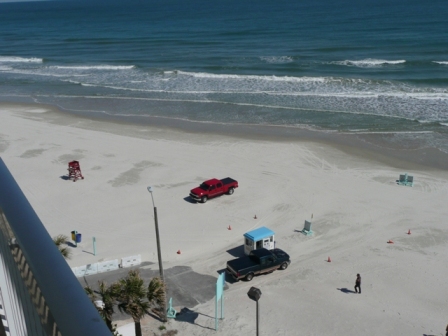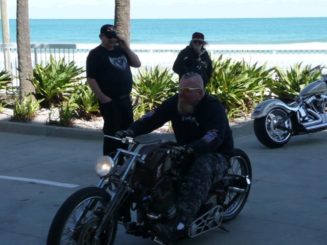Arrivée a Daytona le lundi 2 mars avec 12°c quelques motos sur Atlantic Ave pas génial,mais bon il y aura des jours meilleurs . L'hôtel,la mer,les vagues les voitures roulants sur la plage.