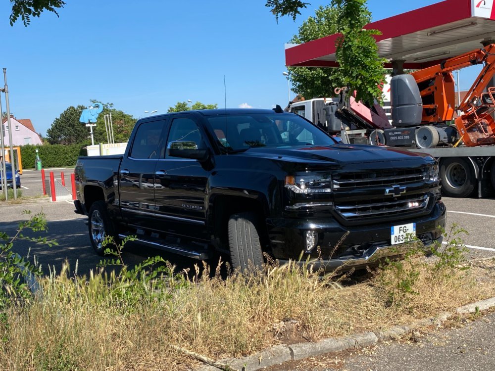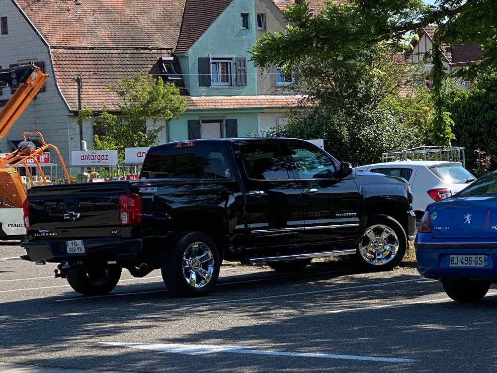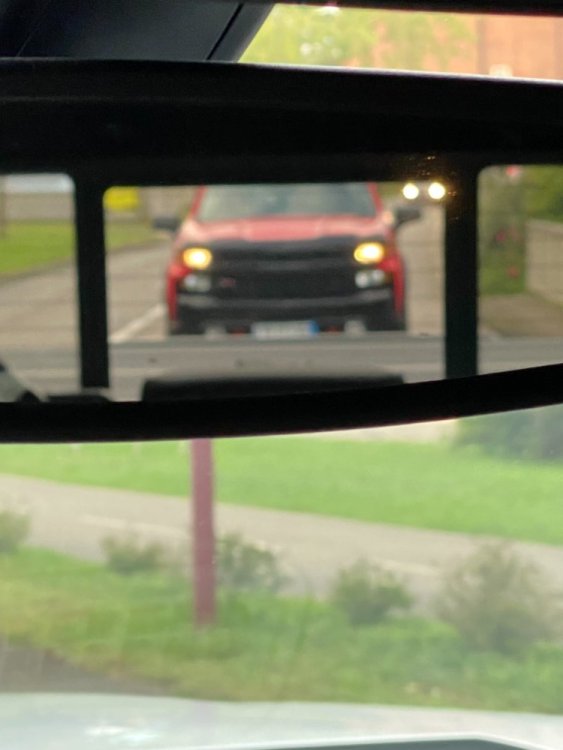 9. ça compte une photo loupée...? pas croisé, mais suivi sur la route par un Silverado Z71 rouge pompier alors que j'étais avec mon Silverado.... Une photo faite par un piéton eût été bien plus sympa.... (avec les 2 siverado à la file....) et une mustang... (ça devient tellement banal....)