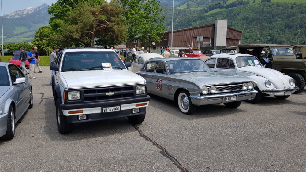 'Sont mignons ces petits SUV modernes... Bref. Weekend complet en Tahoe GMT400 en conditions réelles (bien qu'encore en cours de remise en état, mais ça à bien avancé): Tout le samedi avec 2,5 tonnes au cul à tracter, ça marche super. Et tout le dimanche à le débourrer, aller-retour jusqu'à Soleure par les petites routes, tourisme, etc. Moralité: Je le finis, et je le garde. J'etais encore un peu dubitatif, mais la journée avec le plateau au cul m'a scotché: Rien à voir avec le S-10. C'est une merveille. Le couple à bas régime, c'est presque de la provocation...jamais vu un truc pareil...y'a un fameux toboggan à 12% de pente pendant 4-5 kilomètres sur l'A1, tout le monde connait ce truc...en OD, gaz au tiers de la pédale, 2500 kilos au cul, kick-down en 3...en stationnaire à 150km/h j'ai relâché mais j'avais encore les deux tiers de la pédale en rabe, je pense que je pouvais aller chercher le fond de compteur en rigolant...la stabilité on en parle pas: Un train. C'est tellement large et lourd. Et hyper facile à conduire, comme dabe. Impossible à faire chauffer, impossible à mettre en panne...c'est abouti comme bahut, on sent bien que c'est une évolution des Square Bodies. Convaincu...enfin! À regarder j'y trouve toujours des défauts, par contre à rouler y'a pas: C'est vraiment génial. Le confort, le Vortec, l'étagement de la boite, l'agrément de conduite...rien à dire. Je comprends mieux pourquoi c'est une religion aux US le GMT-400. Donc ouais, bien. J'ai encore du boulot pour le finir mais ça suit son cours et en fin d'année il devrait y avoir du mal comme on dit...
