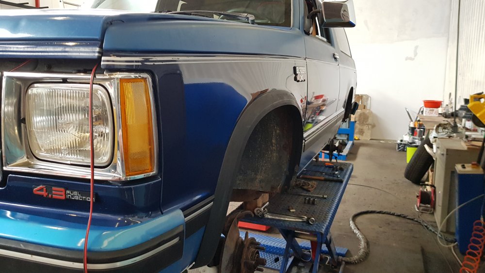 Ouais, en effet, ajouté au fait que c'était de la tôle galvanisée de qualité discutable. Sur les trois S10 j'ai les mêmes triangles, et ils sont tous attaqués à cet endroit...il y a clairement une faiblesse ou une surexposition aux projections de flotte. Les lignes de freins seront toutes remplacées car effectivement toutes avaient percé, seule la grosse qui va du maître cylindre au pont arrière est en bon état et sera conservée...ça tombe bien, elle passe dans le longeron conducteur et c'est une punition à changer. Pour les lignes d'essence rien a signaler, elles sont corrodées par endroits mais rien de sérieux, elles longent a l'intérieur d'un longeron et c'est sûrement ce qui les a épargnées. Ouais, c'est ce qui m'a plu avec ce bahut, il transpire vraiment les 80s, entre les sièges baquets, la vieille sono, les différentes réparations maison qui témoignent d'une époque où trouver les pièces était nettement moins aisé...c'est ce qui fait son charme je trouve. Bon ben hier petite journée, juste ôté les masquages et poli la cire, rangé les pièces retapées dans le coffre pour qu'elles soient hors poussière et timidement commencé à grailler la rouille du châssis. J'ai aussi réessayé de sortir le boulon de remplissage du pont mais sans succès, il est vraiment indémontable...pour l'instant il est encore plus ou moins carré mais je vais finir par le fusiller hélas. Les chances sont énormes aussi pour que je sois obligé de me taper les joints de demi-arbre arrières, puisqu'après avoir bien dégraissé vendredi c'est déjà de nouveau gras...ça va pas le faire. Par contre avant tout je dois trouver une solution pour pouvoir re-remplir le pont d'huile avant d'envisager d'ouvrir le carter et démonter les demi-arbres... Allez, une ou deux photos... Et le job du moment: