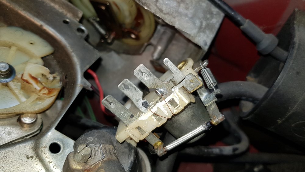 25. Super intéressant, merci! J'ai aussi le Haynes de la voiture sous les yeux, malheureusement très pauvre en infos. Donc la petite pièce entourée d'un fil qui semble cramée aux deux extrémités serait un "Resistor" de 20 Ohms, comme le montre le schéma ci-dessus. Puisqu'on est dans les "Resistors", question subsidiaire...et peut-être liée? Dans le boitier à fusibles, présent sous le tableau de bord, j'ai remarqué que les deux circuit breakers d'origine qui figurent sur les wiring diagrams avaient été remplacés par de simples fusibles. Ils ressemblent à ça: Et ont été remplacés par ces fusibles tout ce qu'il y à de plus conventionnels: Est-ce que c'est courant de faire ça, au niveau fonctionnalité l'un remplace l'autre? Ou c'est une connerie et il serait bon de remettre des circuit breakers? Pour en revenir au problème de base je pense que je vais finir par commander ce Parking Switch qui semble quand même avoir grillé, mais j'essaie avant cela d'essayer de trouver justement pourquoi il à grillé...parce que ça ne se trouve plus qu'en NOS et c'est quand même pas donné. Si je peux éviter de le poser et de le frire comme le précédent au premier coup de contact, ça me plairait bien...c'est un peu ce que je redoute. Celui d'origine n'a pas dû griller pour rien...