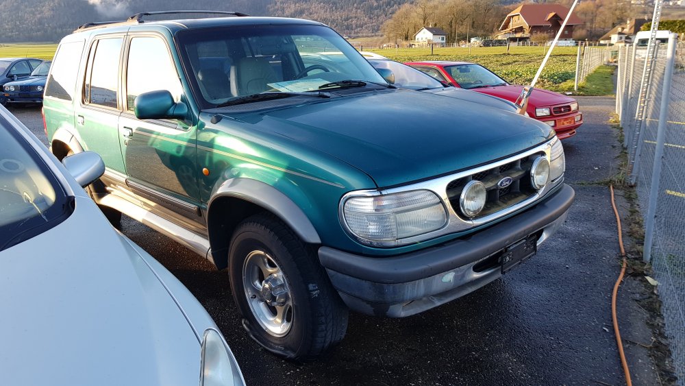 Okay, merci pour les infos! L'E30 a une belle peinture, par contre elle a comme toutes été vandalisée et elle est incomplète. La banquette arrière est manquante, le spoiler avant aussi, la capote est coupée à divers endroits, la vitre de capote a disparu et il pleut dedans sûrement depuis une dizaine d'années, avec les problèmes que l'on connaît question électricité et rouille. Pour les prix je vais me renseigner, la personne avec qui j'ai eu contact pour les Camaros doit être en vacances, il ne me répond plus pour le moment...ou alors il y a un soucis avec les CG... Je vais aller poster les photos dans le topic des européennes, ce sera plus opportun. En voilà par contre de l'Explorer, qui lui est bien US: J'aimerais bien pouvoir le sortir de là-bas...mais avec un panneau marqué 15k euros au tableau de bord et vu ce que ça vaut sur le marché, soit 1500-2000 euros à tout péter dans cet état, je pense qu'on ne pourra jamais s'entendre.