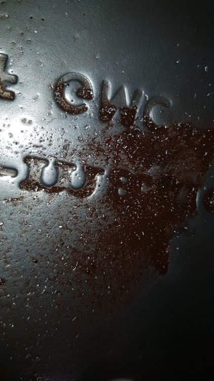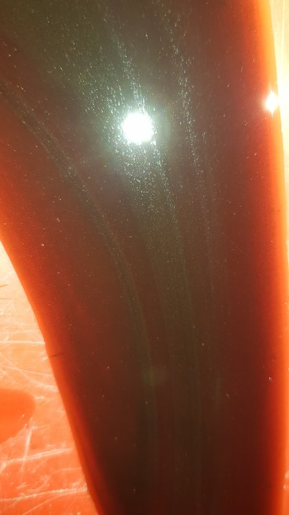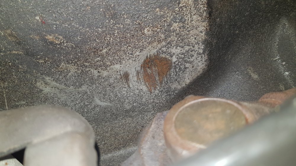 Allez, quelques news...je continue mes tentatives de diagnostic, même si je ne trouve rien. Vendredi je l'ai refaite chauffer et j'ai tiré la vidange. Pour rappel il s'agissait de la troisième vidange, j'en ai fait deux en deux jours lundi et mardi passé. Elle tournait depuis mardi avec la troisième vidange. Le filtre à huile est le même depuis le redémarrage, je l'ai juste sorti et retourné les trois fois pour le vider et le reremplir d'huile neuve. L'huile à la vidange avait toujours le même aspect: Brun-gris, pailletée. Pas de changement par rapport aux deux premières. J'ai ouvert le filtre et sorti l'élément papier que j'ai étalé au propre sur l'établi, comme conseillé par CanAm. Verdict: Propre, pas de limaille, un peu de dépôts noirâtres emprisonnés dedans. J'imagine de vieux imbrûlés ou dépôts d'huile décollés des parois du bloc, voir même un peu de rouille. Mais rien de vraiment alarmant: Pas de morceaux, pas de ferraille...mais toujours ces paillettes de bronze présentes en quantité dans l'huile. Qui manifestement ne finissent pas dans le filtre. Huile qui tourne depuis 4 jours en haut, huile tout juste sortie du fût en bas: Donc bon ben huile neuve, filtre neuf et roulz. A mon avis le moteur se porte plutôt bien, je suis moins inquiet qu'en début de semaine du moins. Pression d'huile toujours bonne à tous régimes, ça prend bien les tours, le ralenti est bien régulier...tout à l'air d'aller. Concernant la boite rien de neuf. Mon père est venu m'aider donc j'ai enfin pu aller sous la bagnole pendant qu'il la tenait freinée avec une vitesse. Impossible de voir quoi que ce soit, si ce n'est que ça vient bien de la boite, visiblement vers l'avant...convertisseur, pompe à huile, mystère...en tout cas ça grince. Et il y à une vibration bien perceptible à 1500 tours, l'ensemble moteur-boite vibre, ça remonte dans toute la caisse et particulièrement dans le volant. Suite à ça je l'ai donc sortie pour la rouler pour la première fois...je me suis dis que bon...y'avait plus grand chose à perdre de toute manière. Je suis allé gentiment sur le parking d'en face faire deux ou trois essais. Donc bon ben hydrauliquement elle fonctionne, c'est quand même ça qui fait chier...passage 1-2, rétrogradage au sélecteur, 1ère et 2ème en manuel, marche arrière: ça passe franc, ça patine pas, tout est normal. Pas plus de bruit en roulant qu'au ralenti vitesse engagée, toujours le même grincement. Et pas de disparition du grincement après avoir fait quelques tours de roues, il est toujours présent. Donc redémontage demain. J'ai juste un peu peur de ces copeaux d'alu dans la vidange...j'espère que c'est pas le corps de boite qui à été usiné par une pièce cassée ou autre...y'a autre chose en alu dans une boite comme ça qui est susceptible de se bouffer, à part le corps de boite? Ah oui, et un truc qui m'a fait rager...j'ai déjà préparé un peu l'outillage pour le redémontage demain...et en passant du temps sous le châssis je suis tombé sur un truc qui m'avait échappé et qui confirmerait ma théorie de la boite qui aurait pété dans la voiture et du volant moteur qui aurait absorbé le choc (voir l'AAC, éventuellement)...vraiment je m'en veux de ne pas avoir vu ça...mais voilà, c'est là, juste au-dessus du croisillon avant: On s'en rend pas bien compte sur photos mais le plancher à un bon pétard, c'est enfoncé comme il faut, avec ces traces qui ont mis la tôle à blanc et qui semblent s'être faites en rotation...impossible d'être catégorique, mais à mon avis c'est bingo. Maintenant ma pire hantise, et j'ai bien l'impression que c'est le cas, c'est que la boite était bonne mais que c'est le volant moteur voilé qui l'à butée en faisait tourner le converto ovale...et par la même occasion usiné les coussinets côté moteur. Si c'est ça je m'en coupe une...mais je ne le saurais probablement jamais... Bon sinon ben je redémonte demain. Heureusement pas que du négatif: Elle a fait ses premiers tours de roues en 16 ans par ses propres moyens. C'était beau. Semi-victoire quand même. J'ai quand même eu la banane et mon père encore plus pendant une matinée...même si forcément les essais étaient écourtés par le soucis de faire plus de dommages à la boite qu'elle n'en a déjà. Et globalement je dois dire que pour une bagnole qui à fait autant de temps arrêtée, ça roule étrangement bien: La direction s'est purgée, plus de points durs. Elle accélère bien, ça freine bien et beau droit, elle fait un beau bruit, on sent que le moteur tourne rond, y'à bien du couple, électriquement tout refonctionne...bref...on est pas si loin du compte. Elle est évidemment bourrée de défauts, j'ai encore une page A4 minimum de travaux à faire, mais la base est là...dans les grandes lignes, y'a moyen d'en faire quelques chose de bien, aucun doute, elle méritait de sortir de son mouroir malgré ce redémarrage chaotique et ce problème de boite à régler. Inutile de dire que c'est un peu frustrant de la redémonter et de repartir à zéro...le grincement passe encore, en revanche les copeaux d'alu ça j'aime pas...je préfère assurer, si la boite devenait inrévisable à force de la faire aller, ce serait pire. Enfin maintenant elle est dedans, stockée comme il faut, elle a fini de s'abimer...je vais gentiment avancer dessus et ça finira par rouler. A suivre! Demain réveil à l'aube, démontage et remisage de la voiture avant 17h00 maxi, faire la valise et mardi matin départ pour l'Alsace pour une grosse semaine réparatrice...vivement!!!