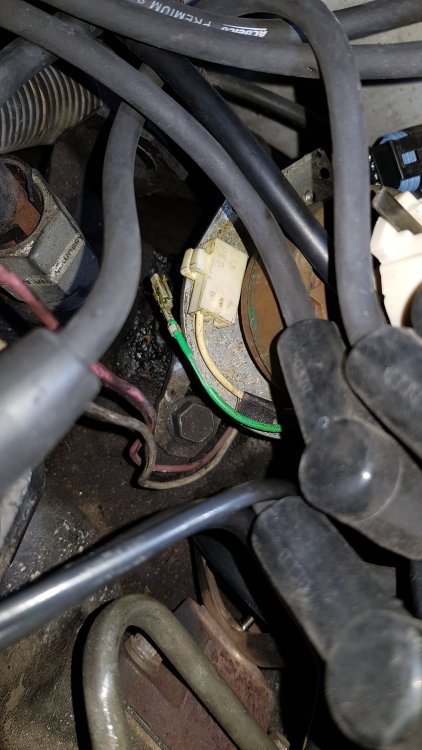 6. Quelques news...les routes ne sont pour l'instant pas excessivement salées, du coup ça roule encore. Youpie! Alors Numéro 1 remplit sans broncher son rôle de déménageuse: Et sur Numéro 2 j'ai juste profité d'un passage au QG pour lui remettre l'ancien module d'allumage du HEI (je l'avais changé il y à 6 mois pensant que ça pouvait être la cause des quelques soubresauts qu'il à des fois au ralenti mais sans amélioration, donc bon...) et changer la prise de connexion qui avait cassé au démontage. Zone d'intervention, tout au fond contre la cloison pare-feu...'faut avoir des doigts de fée: Et forcément, vu l'emplacement du distributeur et la chauffe pendant quelques 276'000 bornes, les fils sont cuits et recuits (comme la prise qui avait cassé d'ailleurs, paix à son âme) et évidemment ce matin alors que je ne voulais pas m'éterniser à faire de la méca, en les manipulant avec une minutie extrême pour débrocher la prise, j'en ai un qui s'est dénudé sur un bon centimètre...m3rde ch*er caque! Du coup pour éviter tout arc électrique dans le HEi il à fallu réparer et à force de réfléchir j'ai pu délicatement passer des gaines thermo par dessus les deux fils débrochés, avec ensuite juste la place pour passer le décapeur thermique pour les faire se rétracter et ça tient au poil! Ouf! C'est de la chirurgie fine, j'en menais pas large...dans l'idéal il faudrait que je change les allumeurs, sur les deux véhicules d'ailleurs, vu qu'ils sont en plus connus pour en plus mal vieillir (aimants qui avec les années se fissurent avec la force centrifuge et la chauffe au niveau du stator), mais tant que ça marche...j'évite. J'aime pas jeter une pièce qui fonctionne...même un peu mal. Les soubresauts viennent assurément de là, mais bon, c'est pas de ça qu'on meurt...pis bon j'aime bien, on se fait un peu bercer aux feux et une fois sorti de bistrot un plein comme une huitre ça aide à digérer. Bien pratique! Meurci Cheuvroläy! Du coup ben il marche toujours aussi bien que l'autre, il sert pour les trajets déchetterie, fournitures pour l'atelier, balades du weekend, bref c'est polyvalent...d'ailleurs je rentre de 150 bornes après une petite journée à Genève, rien à dire, ça fonctionne au poil! Le froid, la nuit, la neige...aucune importance, ça fonctionne pareil. Que du bonheur! La pression des pneus et les niveaux une fois toutes les morts de pape, de l'essence...le reste se fait tout seul!