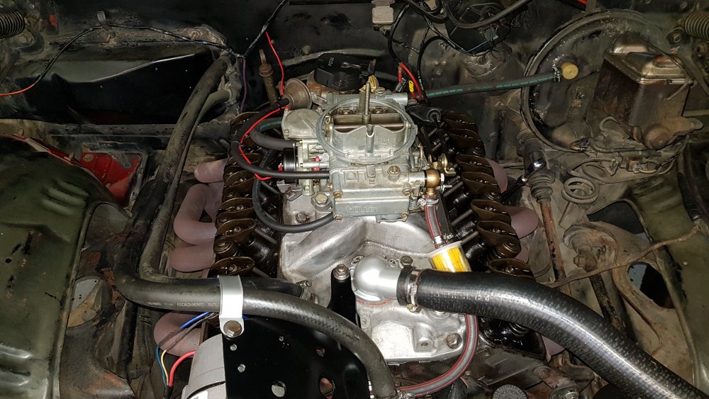 21. Salut les loulous! Bon ben déjà la bonne année, nomdediou! J'ai déterré du fond du garage cette bonne vieille croûte pourrie de Camaro SS 70, dite "le boulet", pour laquelle je n'ai toujours absolument aucune solution pour la restaurer (pas de temps, pas de place, les thunes ailleurs, etc.) mais il s'est quand même passé un soubresaut: J'ai réussi, deux ans plus tard, à ressortir le Holley 4160 de dessous-l'établi et à y coller une pochette de joints avant de mettre un coup de propre à l'admission, le régler vite fait, changer l'essence et mettre un coup de clé dans la bête...ça donne ça: Donc bon, c'est déjà pas mal. J'ai pu la déplacer, ça tourne correct. Seulement après avoir je pense fait le tour de tous les réglages du Holley (niveaux de cuves, came de pompe de reprise, choke électrique, etc.) je galère sur deux trucs, à savoir les réglages carbu et allumage. Le problème concret: -J'ai un gros retour de flamme au carbu quand je mets le pied dedans franchement. En revanche si je lui fais monter les tours progressivement, elle y va sans problème. Mais si je mets le pied dedans, ça détonne et elle crache du feu à travers le carbu. Après deux ou trois jours au repos j'ai aussi de l'essence qui fuit au niveau de la membrane de la pompe de reprise. Et je suis pas sûr d'avoir procédé correctement pour le réglage...j'ai acheté la jauge à dépression Holley pour affiner les réglages, mais est-ce qu'il faut boucher les ports à dépression ou débrancher quelque chose le temps de régler? J'ai eu beaucoup de peine à lire une indication claire sur la jauge tellement l'aiguille allait dans tous les sens...j'ai lu que ça pouvait s'expliquer par un AAC à fortes levées, j'en sais rien... Passons à l'allumage. Elle n'a plus son 350ci d'origine. A la place un bloc de 327ci de Camaro '67, prétendument stroké en 383ci. Mais sans l'absolu j'en sais rien: Le bloc à été assemblé par un mécano il y à une quinzaine d'année sur demande de l'avant-dernier proprio, et je n'ai absolument aucune idée de ce dont quoi est composé ce bloc. Aucune info sur l'AAC, les internes, tout ça...c'est la loose. Tout ce que je sais c'est que le bloc est un 327 de 1967, que les culasses sont des culasses de 305...c'est les seuls numéros de fonderie que j'ai pu trouver. Le reste...mystère. Elle est convertie en allumage HEI avec capsule à dépression. Le problème: -Je ne sais pas comment régler l'allumage. A quel degré d'avance pour un bloc pareillement trafiqué? Quoi débrancher et boucher, à quel niveau? Je pige rien à ces notions d'avance initiale, cumulée, aux deux degrés d'avance qui s'y rapportent...la lampe à déphasage, pas à déphasage...tout ce merdier...et quand je cherche à comprendre sur des articles en anglais c'est encore pire, j'ai tellement tout bien mélangé dans ma petite tête que j'en suis revenu au point de départ. Bref, si quelqu'un à une méthode un peu claire, je prends avec grand plaisir. Je suis terriblement lent à la détente. Pas aidé par les différents articles lus sur internet, ma Camaro 83 étant aussi en HEI mais cette fois d'origine et avec exactement le même modèle d'allumeur, j'ai pensé trouver la marche à suivre claire dans le Haynes, résultat des courses ça dit qu'il faut avant de commencer à regarder l'angle d'allumage avec la strobo commencer par débrancher un connecteur 4 broches...la bagnole en à un à 3 broches qui n'a pas du tout le même aspect que dans le manuel...bref,pas mieux...j'ai eu vite fait de refermer ce torche-cul. Donc voilà, je ne sais pas si quelqu'un à de l'expérience en Holley ou en moteurs "prépa"...je suis à la ramasse...c'est si simple avec du full stock. Bref, voilà...le but ce serait que je puisse déjà vérifier le calage, régler le carbu nickel de manière à pouvoir la déplacer sans me faire chier, j'ai deux jours devant moi pour opérer puisqu'en deux ans tout est presque tombé en rade (jauge à essence, régulateur d'alterno, la boite qui pisse par TOUS les joints, etc.)...et je me disais que si elle pouvait ressortir de l'atelier en tournant nickel, ce serait déjà un début. Si jamais...d'avance merci!