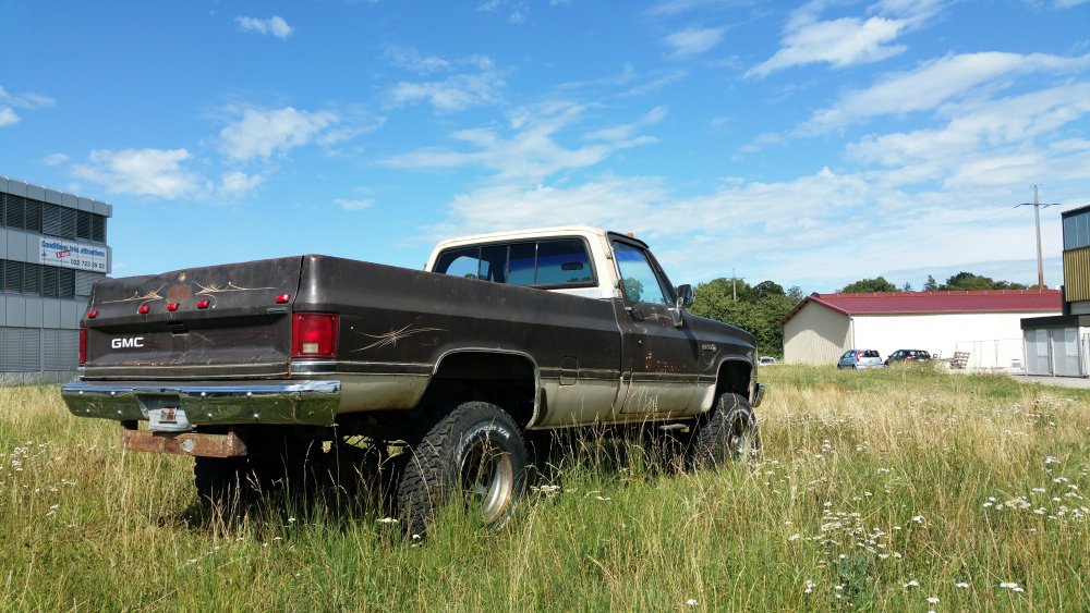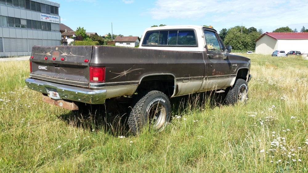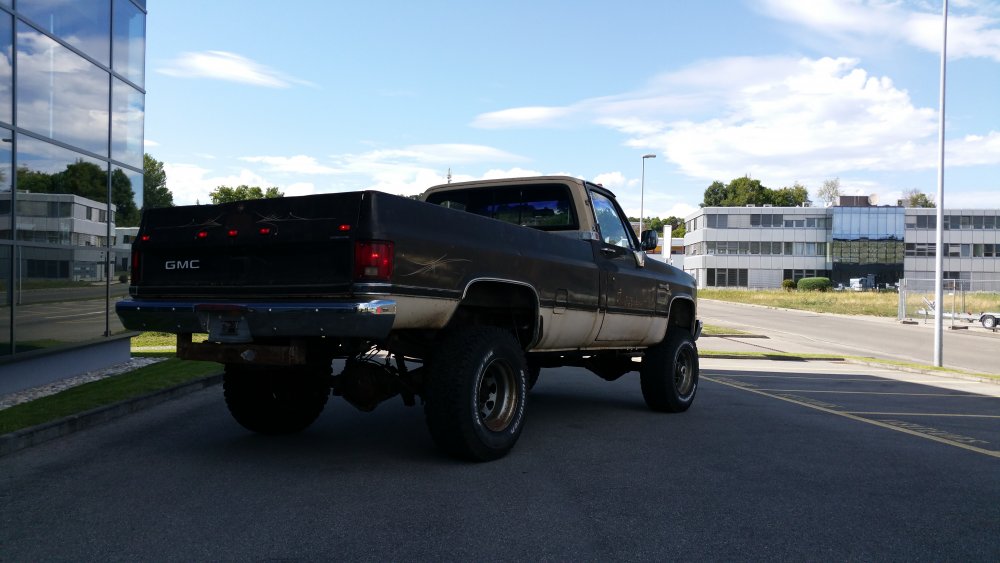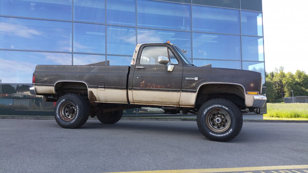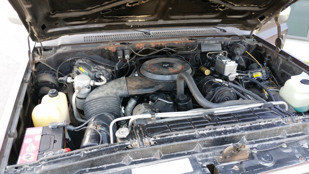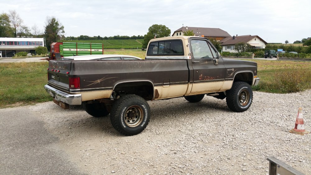 Bon ben comme certains l'ont peut-être suivi sur le topic mis en lien deux posts plus tôt, j'ai eu tout à coup, comme c'est toujours le cas avec moi, c'est à dire pressant comme une envie de pisser, l'envie de faire tourner le GMC. Motivation principale: Fermer la gueule à un collègue de travail qui à eu la mauvaise idée de me narguer, alors que je venais de lui dire que j'hésitais à relancer l'acquisition d'un International Scout II, que de toute façon, t'as déjà 36 bagnoles, pis ton GMC là c'est presque le même, pis tu l'as même pas fait tourner...bref, la rengaine habituelle du mec bien conformiste à qui j'aimerais à tout prix ne pas ressembler... Alors je lui ai répondu le fond de ma pensée: -"T'façon, le jour ou j'aurais décidé, ce sera trois jours de boulot et il tourne. " ...et aussi pouvoir le déplacer, accessoirement. Parce qu'un 3500 merde, c'est lourd, et les 33" sans DA, ben re-merde, ça tourne mal. Résultat? Il tourne. Il roule, il freine, il recule...enfin bref, rien à redire. Si je ne fais pas tel ou tel boulot, c'est parce que j'ai pas envie, simplement. J'aime bien faire les choses avec entrain, quand j'ai de la motivation, quand j'ai envie...pas juste faire pour faire, "parce qu'il faut le faire", rien à foutre, c'est une passion, pas le boulot ni le bagne. Et le deuxième problème c'est que je suis encore une quille en méca, j'ai pas la théorie, j'ai d'énorme lacunes, quand je connais pas je flippe avant de réfléchir...bref...sur ce genre de boulots j'apprends tout en faisant, et en plus je dois souvent me canaliser en même temps...mais il y à des périodes ou j'ai plus confiance en moi, comme ces temps, et du coup c'est nettement plus propice à ce genre de premières. Du coup avec l'aide des tôliers d'ici, qui m'ont apporté une aide et surtout une vulgarisation technique indispensable, et que je remercie encore une fois, ben j'ai sur une semaine fait les travaux suivants: -Vidange de boite -Vidange de DA -Prépa à la mise en route (sortir les bougies, ATF dans les cylindres, faire longuement tourner le bloc au démarreur, tomber les cache-culbus pour jeter de l'huile par le haut, etc.) -Posé l'allumeur neuf, raccordé les fils neufs aux bougies neuves et à la bobine neuve -Calé au PMH -Connecté les pompes à essence, réparé un mauvais contact entre l'ECM, le "hot fuel module" et le switch d'inversion des réservoirs -Tombé le faisceau moteur quasi complet, la boite à fusible pour aller faire une dizaine de soudures à l'arrière, ou un gros départ de feu avait été réparé avec des saloperies de connecteurs de supermarché...l'accès n'en parlons pas, j'en ai chié comme un âne. -Mis 40 litres par réservoir pour la mise à feu -Dégrippé les injecteurs -Vérifié l'état d'un grand nombre de composants, dont l'ECM, la sonde TPS et bien d'autres trucs. Je suis venu le samedi pour le démarrer, tout était prêt jusqu'aux extincteurs, seaux d'eau et les vieux conduits de poêle à bois pour diriger les gaz d'échappement jusque dehors...mais rien à faire, j'avais pas d'impulsions aux injecteurs du TBI. J'ai trouvé un moyen assez rustique de les dégripper le dimanche matin après avoir potassé toute la nuit, ça a marché, et en milieu de matinée dimanche il est parti au premier coup de clé, dans un vrombissement terrible qui a envoyé valser dans un spectaculaire nuage la poussière et toutes les merdes accumulées durant les 23 dernières années d'abandon. Il a tout de suite tourné juste, à trouvé son ralenti, aucun bruit mécanique parasite...j'ai pu le faire tourner plus d'une demi-heure jusqu'à pleine chauffe. Depuis, j'ai: -Calé l'allumeur à la strobo -Changé le maitre-cylindre, longuement purgé les freins -Refait deux vidange du LDR, et une du liquide de DA -Changé une petite durite de chauffage qui a percé au quatrième démarrage -Désembrayé la boite de transfert du mode 4x4 HI...hier...il me semblait bien qu'il ballottait pas mal sur asphalte. Je l'ai sorti deux fois, il roule bien: Accélérations terribles, ça arrache (454 inside), freinage parfait (droit, court, ferme, assistance hydraulique efficace), direction fluide. Maintenant, les problèmes sous-jacents sont les suivants: -Amortos morts devant et derrière. -Bushings de lames avant HS, polyuréthane qui part en miettes -Bushings d'extrémités de barre stab avant bien affaissés, à remplacer -Visco-coupleur HS, embrayé en permanence -Boitier de DA à réviser, fuites -Pompe de DA à réviser, fuites -Bocal de liquide de DA déporté à remplacer, ressoudé tellement trop fort qu'il a un trou sur le côté qui laisse pisser l'ATF et pourri tout l'avant du bloc. -Le radiateur, salement colmaté de calcaire, tartre et dépôts gras, qui va demander encore plusieurs rinçages à l'eau claire, ensuite je lui mettrais un nettoyant dans le gosier pour éliminer un maximum de ces foutues boues. Chauffe aussi à surveiller, si ça chauffe, c'est départ chez le spécialiste direct pour remplacement du faisceau, vu l'aspect général, pas la peine d'essayer d'économiser des bouts de chandelles. -Thermostat et son joint à faire une fois que j'aurais du LDR globalement clair, à la jauge il fait son boulot, mais après 23 ans et pour ce que ça coûte, je préfère assurer. -Connecteurs d'injecteurs à remplacer, bien fondus par le départ de feu...c'est purement esthétique, j'avoue -Câble d'accélérateur, pareil, gaine bien fondue par le feu, du coup même après graissage il est dur à monter dans les tours progressivement, c'est brutal...mais ça peut aussi être le fait de la tringlerie du TBI ou simplement du couple du big block, j'en sais rien. Tout est commandé, que de la belle pièce, ça devrait arriver la semaine prochaine. J'ai eu pas mal de peine à déterminer la hauteur de la réhausse, qui est finalement de 4", et de la peine aussi à trouver les amortos qui vont avec, j'ai finalement trouvé chez Rancho, du top matos!