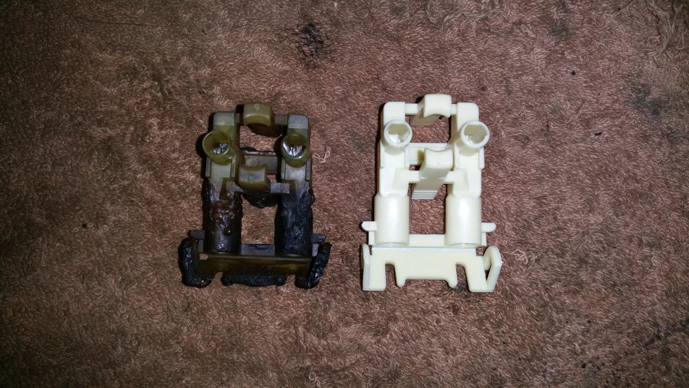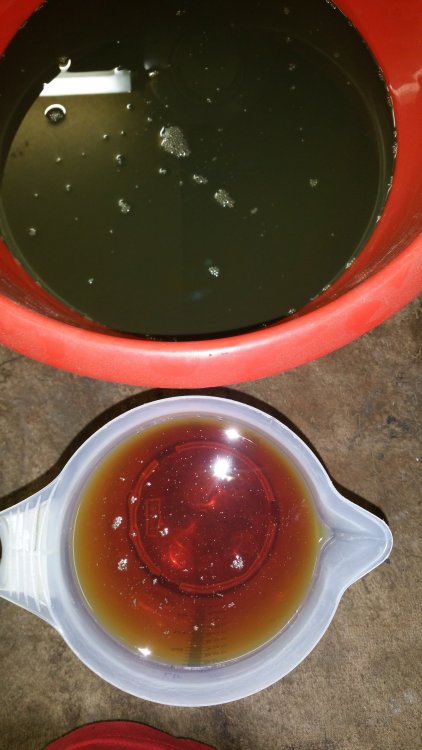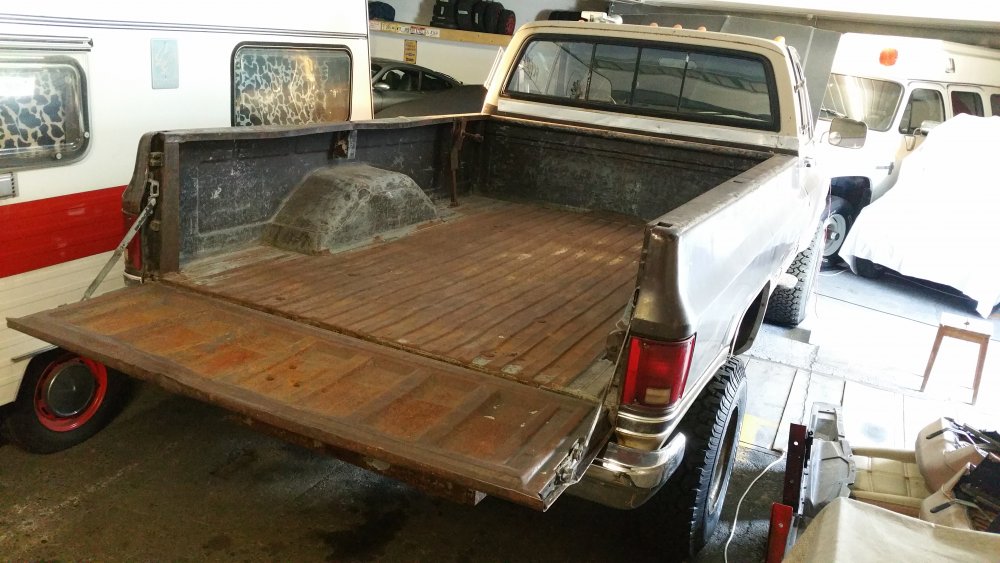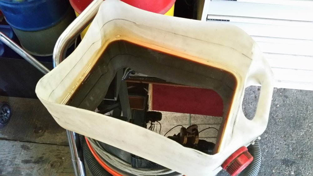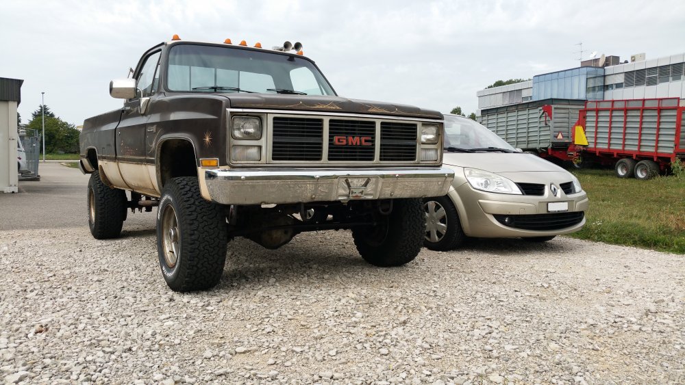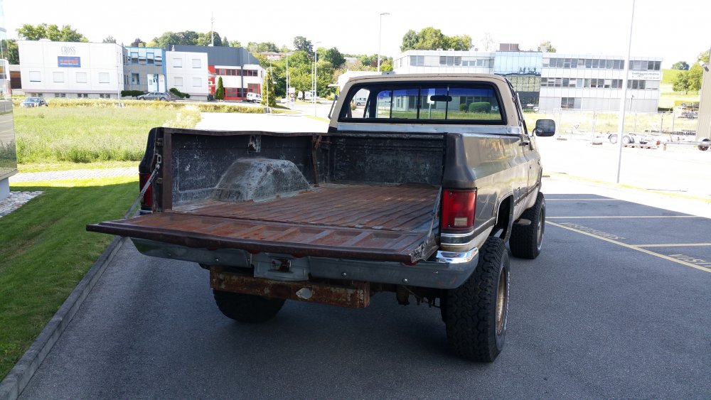 De rien, avec plaisir! A propos de photos je suis en train d'en trier et je retombe sur des travaux récents de préparation au démarrage du GMC que je n'ai pas forcément évoqués. Vidange de boite: Ce solénoide était débranché, c'est peut-être moi qui l'ai agrippé en retirant la crépine, je n'ai pas fait attention. En tout cas je l'ai rebranché. 11 litres dans la boite tout de même. C'est quand tu retires la dernière vis du carter que ça fait drôle... -Vidange boite de transfert (pas de photos) -Dépose du câble d'accélérateur pour graissage (pas de photos) -Achat d'une nouvelle pompe à graisse à une main, et graissage complet du train avant. C'était bien nécessaire, j'ai du y passer un tiers de la cartouche neuve. Dépose de l'ECM pour contrôle Dépose du Hot Fuel Module pour contrôle...il à eu chaud. Mais passe les tests au multimètre et fonctionne bien, du coup il est remonté (j'en ai un d'avance dans les cartons si jamais) Remplacement du MC qui fuyait par l'alésage du piston, purge du MC neuf à l'étau: Le système d'évacuation des gaz d'échappement home made pour le jour du redémarrage, qui a parfaitement fonctionné et m'a évité de tourner de l'oeil. Le bordel qui s'était accumulé en plusieurs années dans la benne qui me servait de stockage...avec: Sans: Voilà...et j'en oublie.