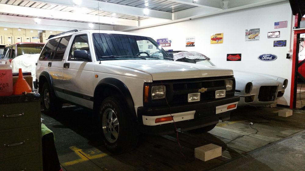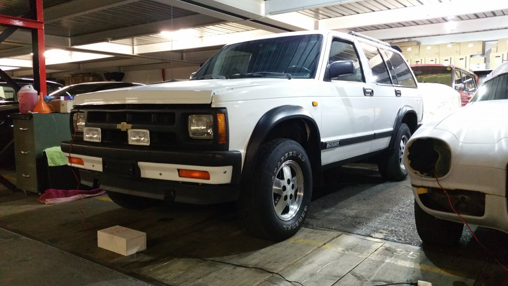 Bon ben ouerke inne prograisse! Petite plage de libre du lift jusqu'à lundi soir, il n'en fallait pas plus, plop': Pour une fois timing parfait, avec moi c'est rare. J'ai démonté ce matin, les pièces sont arrivées à la baraque à 14h30, lundi matin je remonte, lundi soir je roule! Donc au programme...pont avant: beurk! Pont arrière? Ben beurk aussi. Disques et plaquettes, repoussé les pistons d'étriers: Le principal fautif...que je haïssais, jusqu'à ce que je puisse voir qu'il était d'usine, avait tenu 198'500 bornes et 25 ans, et à qui je voue depuis un profond respect. Merci Monsieur! Mais bon...c'était l'heure: Et la sortie de chauffage, certainement le moins drôle et le plus long, parce qu'il faut absolument aller se faire entailler les mains derrière le cache-culbus passager pour aller choper ce p*tain de tro* du c*l de boulon de 8 qui tient la durite de chauffage rigide fixée à la culasse... Mais encore, puisque j'y étais: -Fabriqué un arrêt pour la ceinture ARD dont le ressort de l'enrouleur est manquant, et donc qui se déroule dès qu'on l'agrippe...à défaut de trouver une ceinture complète en charchoal gray, c'est pourtant pas faute de chercher -Redémonté le thermostat neuf, fait deux trous dedans, remonté...pour éviter d'éventuelles poches d'air, vu qu'il pressurise pas, ce bahut -Purgé le bocal du MC, qui était de nouveau crade, le liquide est neuf mais il se charge d'une sorte de boue de caoutchouc qui vient de chépaou...puisqu'il fallait bien tenter quelque chose, j'ai commencé par lui mettre un joint de couvercle neuf, j'en avais d'avance. Heureusement ce n'est que pas beau, puisque ça ne contamine pas le liquide qui était à 1% d'humidité au testeur après 8 mois d'existence. -Complètement vidé l'habitacle, tout aspiré-nettoyé -Refait des retouches peinture sur le châssis et les soubassements -Fait les niveaux, pression des pneus -Trouvé la cause d'un subtil bruit de ferraille que j'avais seulement à froid pendant quelques secondes, vraisemblablement c'était le carénage sous le moteur dont les rondelles à ressort ont faibli avec les années et qui allait vibrer contre la traverse avant lorsque le moteur était en ralenti accéléré...réglé avec 4 rondelles de bouchons de vidange en nylon que j'ai usinées Les observations, pour plus tard (ou jamais): -Le craquement intempestif que j'ai en tournant les roues à l'arrêt sur sol lisse vient bien du cardan passager, qui à un poil de cul de jeu d'avant en arrière, assurément dû au choc qui avait aussi fait exploser la rotule que j'avais changée juste après l'achat. -Il pisse toujours autant la flotte par les joints d'admission craqués, en novembre si j'ai le temps je pense que je vais m'y mettre, même si ça m'attire pas plus que ça. -S'il repasse un CT et quand j'aurais des thunes à claquer, ce sera: -Flasques avant -Cardans -Moyeux -Cylindres de roues -Réviser les étriers avant Tout ça préventivement, parce que ça marche très bien mais j'aime bien quand c'est nickel! Ah ouais, et surtout: Dieu ce que c'est cool à bosser comme caisse, après deux mois à se faire chier comme un âne sur des machins italiens conçus avec les pieds, c'est un vrai bonheur! De la vraie méca de redneck, du gros boulon de 32, de la rouille, du gras jusqu'aux oreilles...aaaaah...vive l'amérloque. Sinon les trains de S10 par dessous, ça ressemble à ça: Sponsored by: A suivre! Je prends mon weekend, mais lundi ça va chier des barres! J'en ai besoin de ma déménageuse moi, mince!