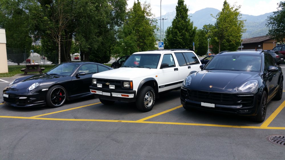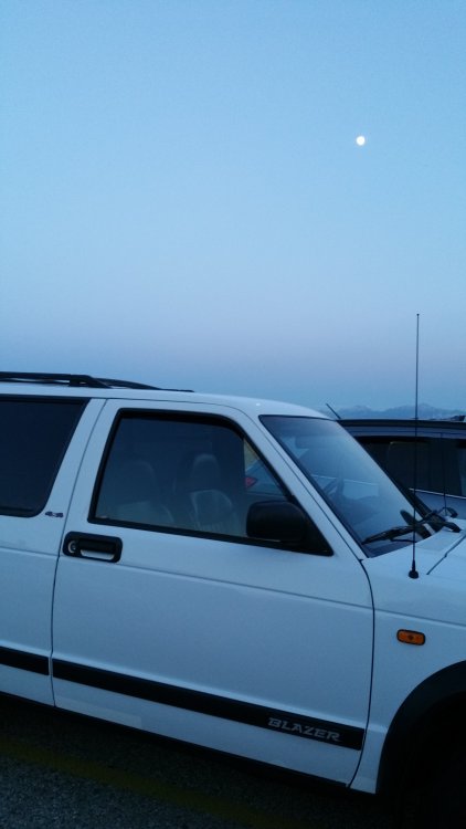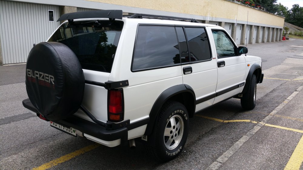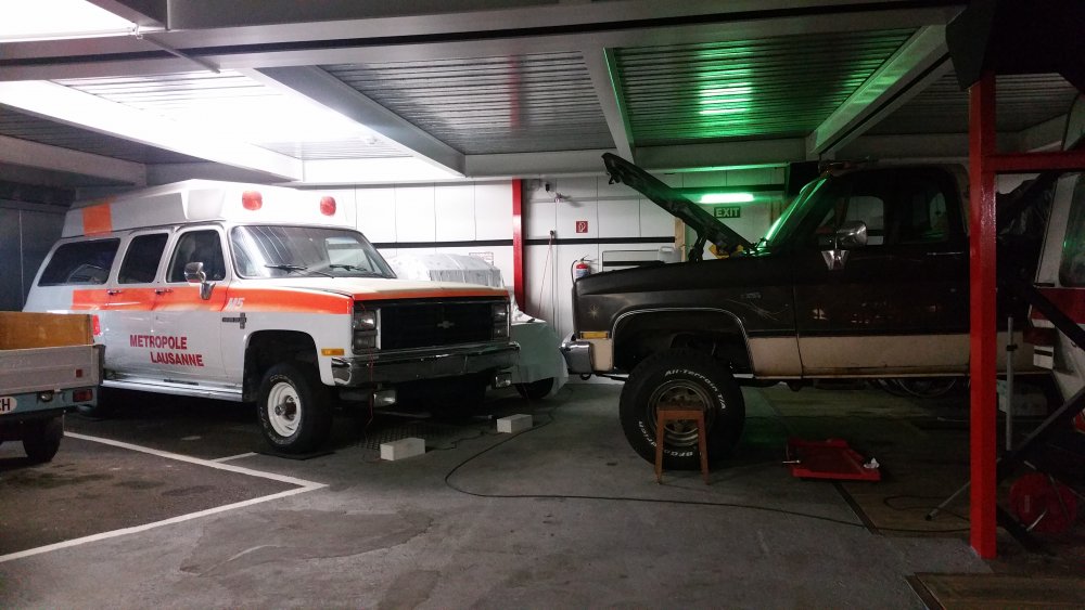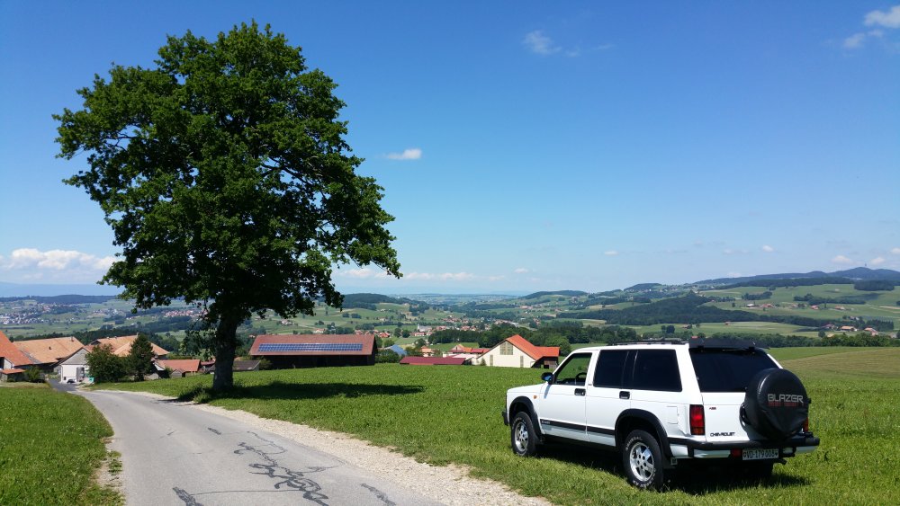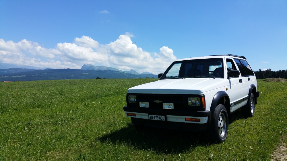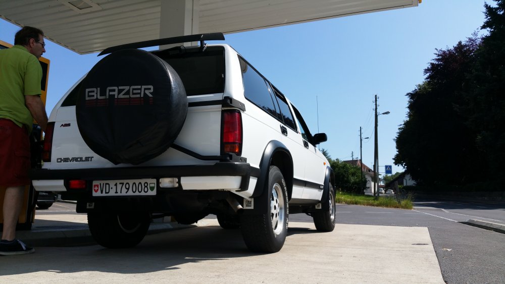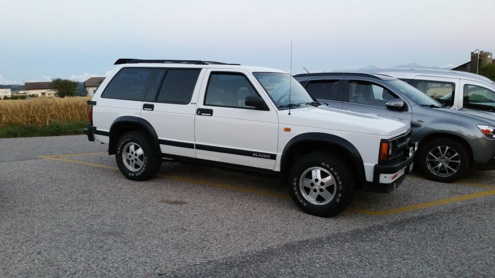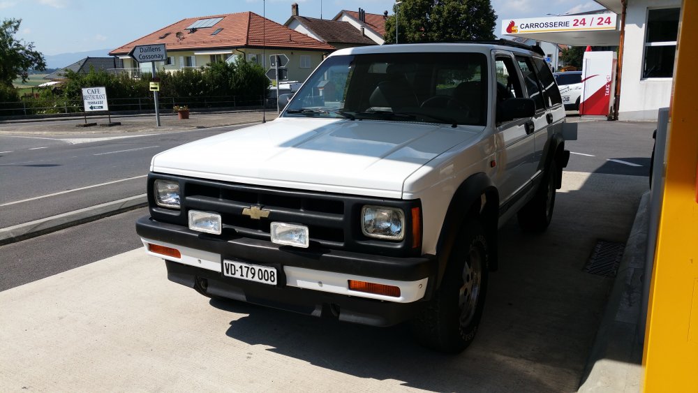 Thanks! Les 160 bornes supplémentaires d'aujourd'hui étaient identiques aux 210 d'hier: Zéro problème. Officiellement bulletproof, le Blazer. Si je veux vraiment faire le casse-couilles, mais alors vraiment la précieuse avec le petit doigt en l'air, juste pour médire, je pourrais signaler que le cardan avant droite à tendance à légèrement craquer quand je tourne les roues sur sol lisse à l'arrêt, signe que...ben de pas grand chose en fait, si ce n'est que les cardans ont 200'000 bornes comme le reste de la bagnole, et que l'avant droit doit avoir un petit peu de jeu dans les cages. J'ai aussi de temps en temps un très léger cliquetis et une infime vibration dans le plancher passager, qui vient du même cardan. Puisque c'est complètement négligeable, j'ai décidé qu'il irait jusqu'au prochain CT (dans une année et demi, voire deux ans avec les retards administratifs) dans son état actuel, et si je repasse le CT sans encombre, vu la facilité pour les changer et le coût modeste, je lui paierais deux cardans neufs, deux moyeux complets, deux flasques, deux flexibles et deux étriers, que je complèterais avec les plaquettes neuves que j'ai déjà, juste histoire de ne pas tomber les roues rien que pour 4 petites plaquettes de rien du tout. Et pis ben si j'ai plus envie ou que je n'ai pas le temps ou les moyens à ce moment-là ben je ferais rien, et pis ça ira comme maintenant, c'est-à-dire nickel! Zéro prise de tête sur ce bahut.