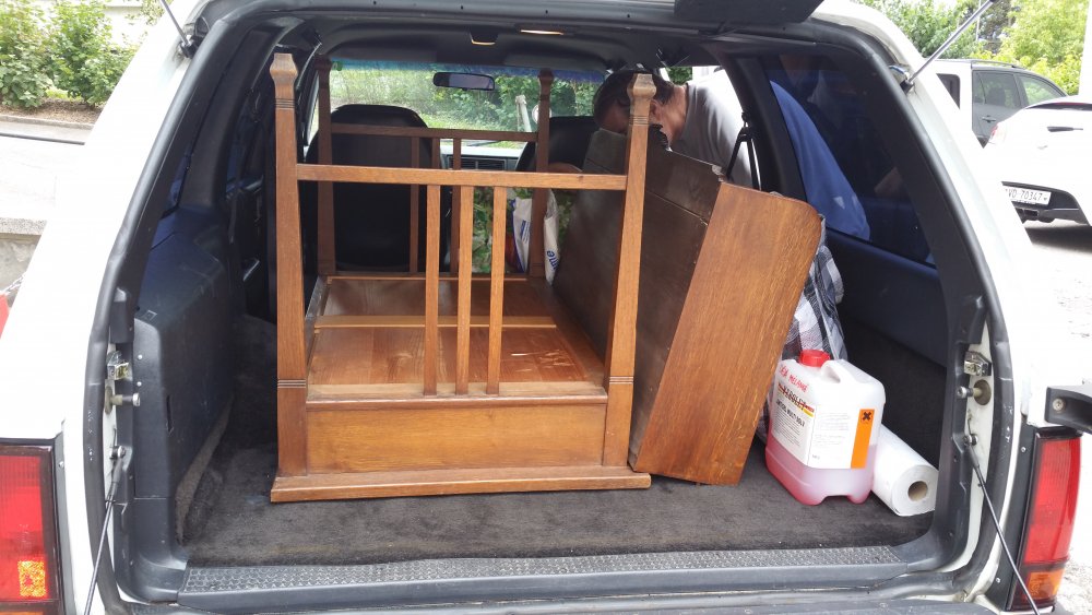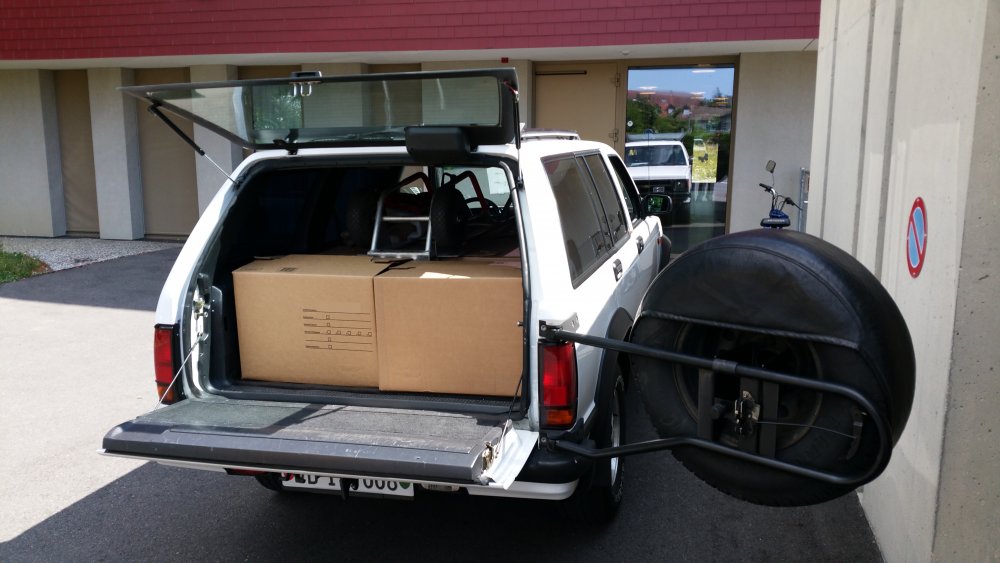 S10 LIFE. -Toute la semaine passée: Déménagement des affaires de la grand-mère, rempli de bazar. -Samedi matin: Pareil. -A partir de samedi 11h30: Mini weekend, jusqu'au soir. Juste le temps d'aller larguer la dernière livrée de cartons dans le nouvel appart', d'aller faire le plein et de jeter un oeil aux niveaux, tous bons. Un petit coup de graisse sur la charnière conducteur qui faisait un sale bruit. Et départ aussi sec pour Vallorbe pour aller redécouvrir la ville, croquer un bout, s'instruire dans un sympathique petit musée ferroviaire tout dans la pierre, donc loin des températures étouffantes de ces jours. -Dimanche: De nouveau déménagement, re-plein la gueule, 14 cartons, les valises, la téloche, les tapis, le frigo, la table à manger...on en rentre dans ce bahut, c'est hallucinant! Aucune sorte de problème, en deux voyages tout était réglé! La table à l'envers sur le toit avec deux sangles, le reste dedans banquette couchée et ça ferme en rigolant. Sur l'autoroute à 110, bwââââââp, rien à foutre, plein ou vide ça pousse pareil! Bref, un modèle de bagnole! MERCI! JE T'AIME! 600 bornes en 3 jours. 197'600 et des broutilles. J'ai tellement rien à faire dessus que je commence à m'emmerder et je redécouvre des ustensiles dont j'avais oublié l'existence depuis longtemps, comme la calculette. J'ai donc fait un truc que je n'avais plus fait depuis des lustres, à savoir un calcul de la conso. En moyenne depuis le début je tourne à 9,5l/100km de moyenne, en mixte, avec quand même pas mal de trajets urbains. Pour un machin de 200'000 bornes et 2400 kilos à vide, je suis très surpris en bien, c'est bien mieux que ce que j'espérais, surtout que je roule pied lourd! Et demain? Bah à 8h30 la clé au cul et vroum!!! Objectif 200'000 avant la fin de l'été.