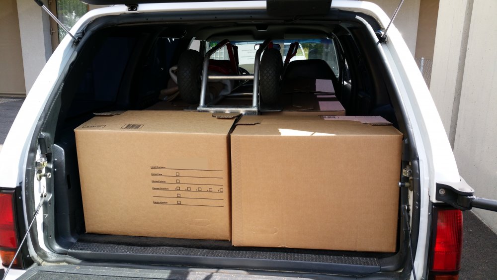Bon, ben...c'était pas prévu, mais y'a un cousin qui s'était engagé à donner un coup de main et qui a planté toute la famille, du coup ben allez, au garage, enquillé l'autoroute et on y retourne. Different week, same job: Un nouvel appart', un achat immobilier, un départ en maison de retraite? Blazer déménagements. +200 kilos, +150 bornes. Par un puissant temps de merde, qui m'aura cependant permis de m'assurer du fonctionnement des essuie-glace avant et arrière pour la première fois, et ma fois tout fonctionne nickel, dans un silence surprenant par rapport à beaucoup de mes autres US...décidément pas encore habitué à rouler dans une bagnole potable. Demain même confiture...départ tôt le matin pour lever du chêne. A part ça ce matin je les avais aux amygdales, le putain de merde d'allume-cigare en NOS que j'ai payé rubis sur l'ongle n'est pas le bon et pour cause c'est du pur GM, de la grande ingénierie du vendredi 17h00, pour la même année-modèle soit t'as une douille et un élément Rochester, soit t'as la même chose en ACDelco...naturellement indifférenciables...et évidemment j'ai l'allume-cigare Rochester qui ne rentre pas dans la douille AC. Retour au point zéro. A suivre. S'il y a des fétichistes des allume-cigare GM, à force de commander les mauvais je dois pouvoir en faire un pack de 10, de quoi se faire un joli collier. En revanche j'ai trouvé une housse neuve pour la roue de secours pour 40 balles livrée...le weekend prochain s'il fait beau je la pose, j'ai pas le temps ce weekend. Elle diffère un peu de celle d'origine, vous verrez...