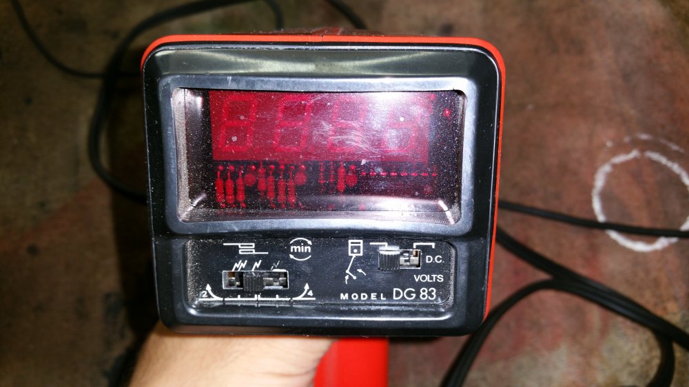 Et autre post séparé pour autre question, mais question directement reliée! Par pur hasard, j'ai retrouvé ça au fond de l'atelier: Òôôôôôôôh le joli sèche-cheveux! Mais problème: J'ai du la récupérer d'occase dans la liquidation du garage du mec à qui j'ai acheté ma Studebaker, et visiblement c'est carrément une antiquité. J'ai naturellement pas de mode d'emploi, et introuvable sur le net. Et je ne me suis jamais servi de ma vie d'une lampe strobos'kipique! Bon, j'ai juste assez de cerveau pour avoir réussi à la brancher sur une batterie, et ça s'allume, et y'a des chiffres. Alors est-ce que quelqu'un aurait une idée d'à quoi servent les réglages, ce que représentent les symboles? Les petits éclairs, le piston, toussa... Pour régler le GMC, je dois la régler comment, cette chose? Et globalement, ça s'utilise comment? La molette, c'est pour augmenter et diminuer le degré d'avance? Quand ça flashe, c'est que t'as gagné le gros lot? Niveau branchements, les deux grosses pinces à la batterie, la grosse noire en plastique sur le fil de bougie du cylindre no1, mais la petite noire, c'est quoi, une autre masse? Je la mets au châssis? Enfin bref...ôsscours! Et d'avance un immense merci s'il y en à qui se sentent de m'aider, j'ai beau potasser tout ce que je peux sur le net, en anglais pour une fois je trouve que c'est pas si simple et je préferais savoir quoi faire avant de tout démonter (admission-bougies-fils,etc), pour ce bahut auquel je suis fortement attaché j'ai envie de faire les choses bien.