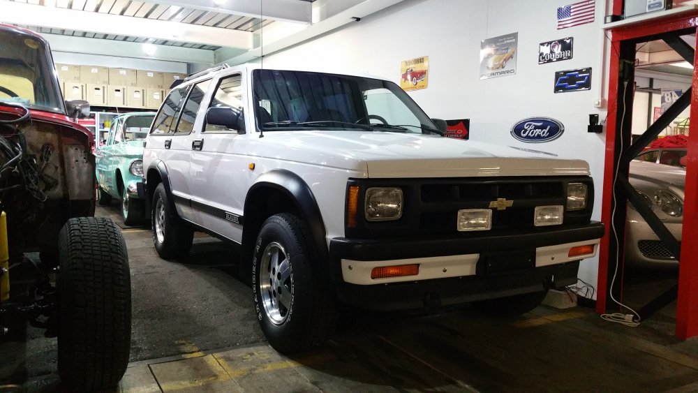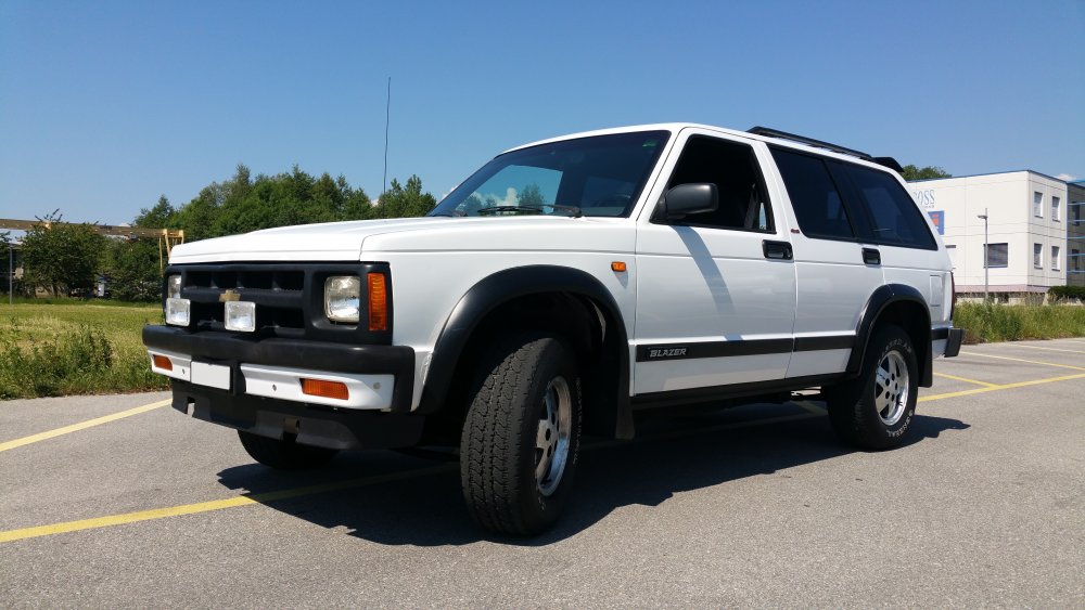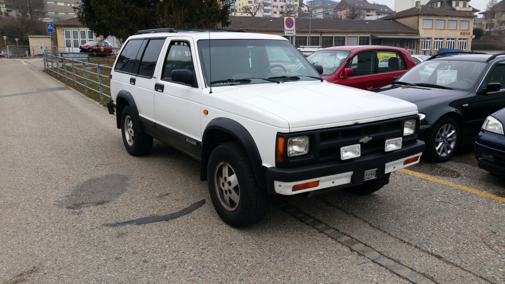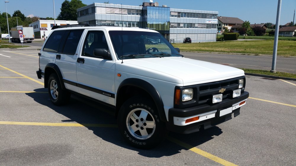 Hello c't'équipe, Depuis un mois que je l'ai, il est grand temps de vous présenter mon nouveau "winter car", et à défaut mon traine-cul actuel, puisque je l'ai trouvé trop tard pour l'utiliser en conditions hivernales. Genèse de l'achat: Une place de libre dans le garage (dramatique, totalement insupportable... ) et je suis toujours aussi mal entouré (potes avec des bagnoles, collègues avec des bagnoles, clients avec des bagnoles, voisins de garage avec des bagnoles, etc.). Justement, mon voisin de garage, avec qui ça n'a jamais été le grand amour, à acheté un Range Rover Classic il y à quelques mois, alors que pendant ce temps je bossais sur les soubassements de mon Jeep (ou sous les surbassements, je sais plus )...et comme il m'a vu bosser dessus et la gueule que ça prenait, on a discuté le coup (chose rare), et il a décidé de me le donner à faire (préparation CT, suspension AV, problème de direction, check-up complet, etc.), et là, c'est le drame! Je l'ai eu pendant deux semaines à l'atelier le temps de faire le tour, et forcément, pour diagnostiquer...j'ai du le rouler. Problème: J'ai adoré. Mais vu le prix des pièces et la conception "à l'anglaise" (donc forcément opposé à tout bon sens ou à tout ce qui se fait dans le reste du monde), j'ai lâché l'idée de m'en trouver un...sans compter la spéculation qui se pratique sur ces modèles, dont le moindre exemplaire kilométré à mort et à moitié rincé se monnaie 5 briques. En revanche l'envie de se taper un 4x4 ou un SUV, US naturellement, elle, est restée. En plus de ça, la Taurus que j'avais achetée il y à un an précisément pour avoir une bagnole logeable dans laquelle je puisse charger raz la gueule et traverser le pays à carrément dévié de la cible: J'arrive pas à l'utiliser comme un utilitaire. Cette caisse est littéralement immaculée, depuis que je l'ai reprise en main elle est vraiment nickel, avec ses 70'000 bornes en première main et parfait état j'ai vraiment des remords...bref...j'ai pas envie de la détruire à la tâche, ça m'emmerde. Donc le cahier des charges est le suivant: -Pas cher, mais vraiment à raz le sol, commedabe, j'ai pas de budget -CT en ordre, pas envie d'un étron qui va trainer 24 mois dans le garage avant d'éventuellement-peut-être-un jour pouvoir passer un CT et rouler. 'Faut que je puisse y coller les plaques et rentrer. -Pas de monstre du style Suburban, Tahoe: Je veux un truc qui passe en ville, dans mon souterrain, dans les parkings de supermarchés, pas chiant à stationner...tant pis pour les crew cabs et les full size, un truc utilisable -Vrai 4x4, un truc qui grimpe aux arbres, l'hiver prochain je veux pouvoir passer dans un mètre de poudreuse avec les doigts de pieds en éventail -Pas de rouille perforante, plein le cul des gruyères, j'en ai assez -Pas chiant en pièces. Pas de Pinto SW, pas de machin construit à 12 exemplaires...ça aussi, j'adore mais j'en ai un plein garage. -Revendable sans tout perdre, ou flippable contre une pizza 4 fromages et une tape dans le dos...un truc ou il y ait au moins un semblant de demande, du liquidable rapidement si jamais j'ai besoin de place, je ne veux pas me marier. -Un truc qui puisse tracter lourd, je veux pouvoir lui coller le plateau et transporter mes couennes, même les plus extrêmes (Sierra 3500, etc.) sans devoir pousser à la montée J'aurais crevé d'envie de me taper un Explorer 1st Gen. Un Eddie Bauer, bicolore, la bestiole, full options, sans rouille, pas cher: Le rêve. Problème: ça n'existe pas. Ces machins crèvent de rouille, les moitiés ont la boite de transfert dans le sac (grosse maladie du modèle), le dernier tiers restant à été battu à mort. Concrètement, dans mes 1500 euros de budget mobilisable, en trois mois de recherches j'en avais trois de possibles: Une entrée de gamme blanche déprimante, aucune option, aucun entretien, sans CT. Un deuxième avec 430'000 bornes, intérieur sérieusement défraichi, rouille...boaf. Un très beau loadé...nickel...mais qui a failli se casser en deux sur le lift du vendeur quand je suis allé le voir: Rongé. On oublie. Ensuite ben j'ai un peu regardé tout ce qui sortait du Michigan avec 4 roues motrices, pas cher, roulable...et j'ai rien trouvé pendant 3 mois, absolument rien...je commençais doucement à apprivoiser l'idée d'acquérir un truc late-90s (Explorer 2nd Gen, Blazer 2nd Gen, Yukon, etc.) mais vraiment, esthétiquement et électroniquement, c'est vraiment pas ma tasse de thé. Et puis un soir, câlé dans le train en pleine tempête de neige, dans la nuit alors que je rentre du taff crevé et alors que je cherchais des jantes été pour la Twingo sur mon smartphone, j'ai une putain de fenêtre pop-up qui s'ouvre...forcément, depuis deux mois que je fais tous les sites d'annonces en rubriques "Chevrolet-Ford-GMC-Dodge-Plymouth, etc.", j'étais bien ciblé. Et ça m'ouvre un lien vers le plus gros site d'enchères suisses (équivalent d'Ebay), ou je vois un des preview d'annonce avec un Blazer S10 avec deux gros phares disgracieux sur le pare-choc pour 200 balles...je clique. Je tombe sur une annonce vraiment pourrave, succincte, mais du genre succincte première du nom. Deux pauvres photos, une prise à 10 mètres du bahut trois-quarts avant: Et une du permis de circulation, ou on y voit tout ce qu'il y à à voir: Le nom du proprio, et la date du CT, valide et récent. Bon des S10 j'en ai vus, j'ai d'ailleurs par le passé plusieurs fois failli en avoir, mais c'était à chaque fois des ruines et vu la grosse production du modèle j'avais toujours décliné, pensant que c'était pas la peine de mettre des ronds dans un modèle que je peux trouver deux rues plus loin en parfait état. En revanche avec moins de 400K bornes, en 4,3L et avec CT OK, c'est vraiment pas courant...là encore, ces bahuts sont généralement battus à mort, les trois quarts qui sortent en annonces sont clairement décrits pour pièces. 
