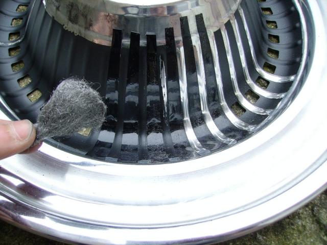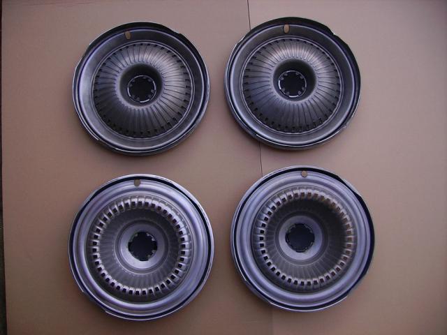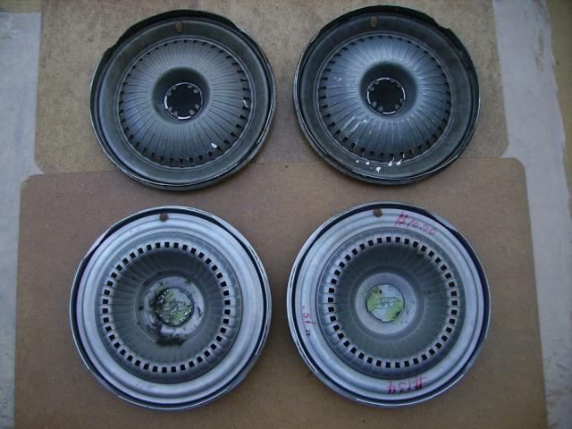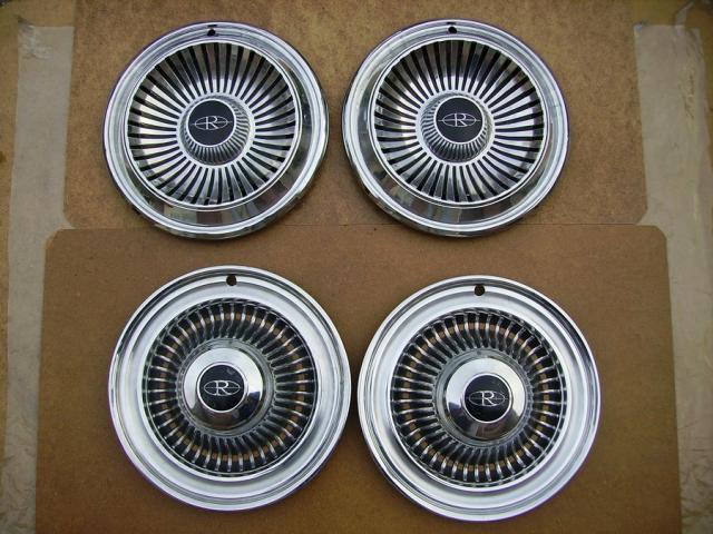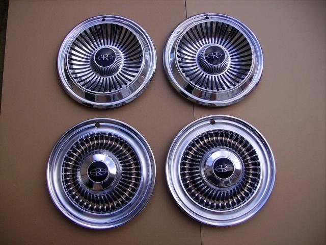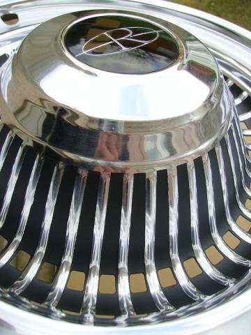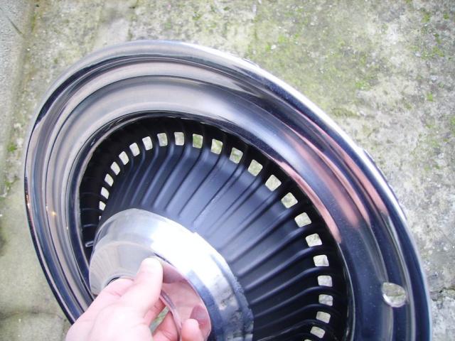 la suite avec les enjoliveurs j'ai fait le choix de mettre 2 enjoliveur différent, tout d'abord pour l'avant 2 de riviera 1966 et pour l'arriere 2 de riviera 1964 pourquoi ce choix pour l'arrière ? car lors de l'achat de la voiture il y avais 3 enjo de 1966 et 1 de 64 a l'arrière est cela rendez vraiment bien comme il sont plus gros au centre cela grossi l'arrière de la voiture est c'est top!!! les enjo qui était sur la voiture était hs j'ai donc fait l'achat d'enjoliveur de 1966 dons j'ai garder les 2 plus beau sans coup. l'achat d'enjoliveur de 1964 les voici avant leur restauration: peinture noir abimé logo au centre pour les model 64 fissuré et chrome encrassé. l'état des enjoliveur de 1964 avec logo éclaté, et peinture rayé ,vraiment très triste leur états. peinture noir mat comme d'origine pulvériser sur tous le tour je ne pouvez pas mettre du scotch pour cacher les parties a ne pas peindre car comme l'enjo et arrondi rien ne tenais et la peinture passé quand même en dessous car très fine. la solution que j'ai trouvé est de mettre du scotch sur les partie a garder déja peinte et enlever le reste de la peinture avec de la laine d'acier. en bas les logo qui été sur les enjo 64 donc fissuré cassé et en haut 2 logo d'enjo de 66 que j'ai récupéré et que j'ai limé l'extrémité au touret a meuler car plus large que les models de 64 . peinture arrière poncé au papier a l'eau très très fin pour pas que cela devienne opaque . puis peinture noir a l'arrière des logo. il sont prés a être remis sur les enjo de 64 les enjoliveur de 1964 fini avec logo et peinture comme neuf. les enjo 66 avec la peinture noir manquante