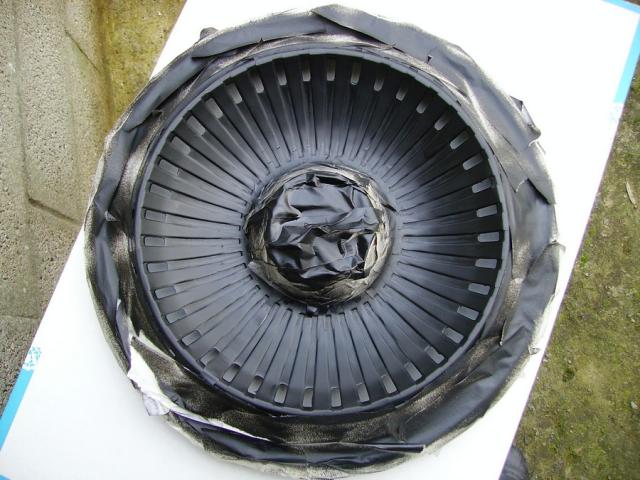 peinture noir mat sur le tour. j'ai procédé de la même façon que les enjo de 1964, scotch sur les partie peinte a garder et enlèvement de la peinture aux autre endroit avec de la laine d'acier. voici les 4 enjo fini ,décrassé a la laine d'acier intérieur ,extérieur, logo changer sur les enjo de 64 et peinture refaite sur les 4 enjo