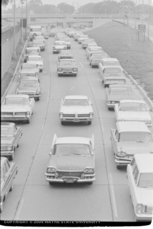 16. C'est toujours désagréable d' être pris dans un embouteillage. N' empêche... Imaginons-nous 50 ans en arrière, au volant d' une bonne vieille caisse made in Detroit, entouré de ces engins chromés et aileronnés.