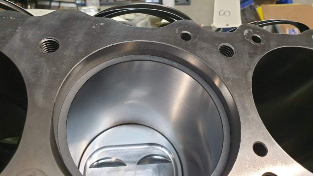 Le mise en place des axes de piston sur les bielles c'est bien passé, opération toujours délicate sur ce type de montage à chaud. Le four qui me permet de monter les pieds de bielle à une température proche de 230°. Mais avant, le piston est placé sur le support prévu à cet effet. L'axe vient prendre place sur la partie verte de cet outil . La bielle sortant du four est positionnée afin de recevoir l'axe sortant du congélateur. Et dans les secondes suivantes, l'axe est définitivement serré . Puis pose des clips et refroidissement à température ambiante.