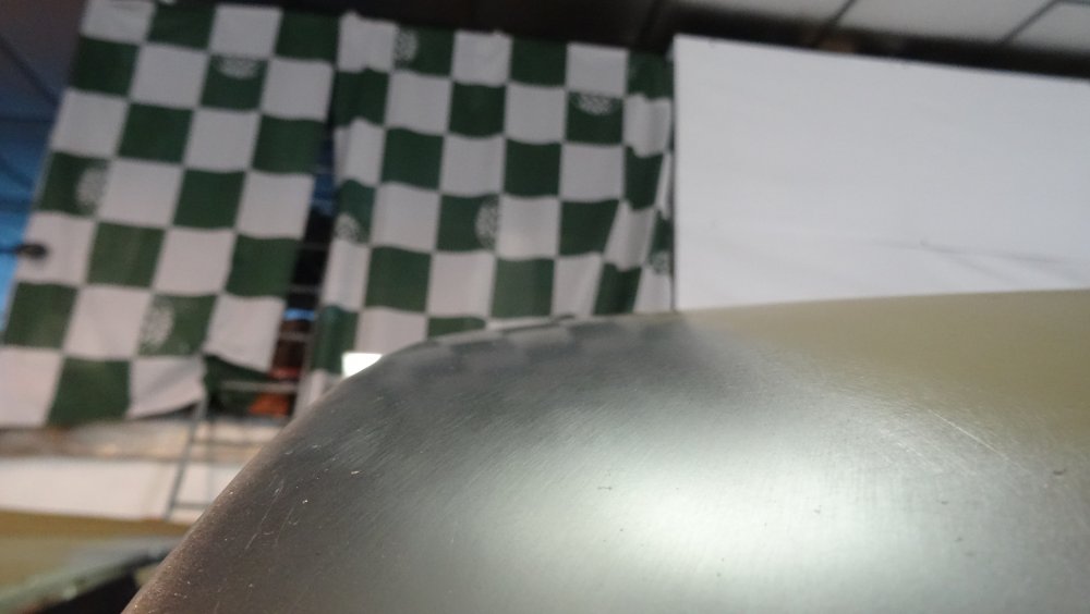 Merci les gars, c'est vrai que cela sent la fin ... des patchs. Finalement j'ai ressoudé la lime...et cela peut aller elle fait le taf. Cette lime fraise me permet de contrôler si la surface est plane. Quand toute la surface est raclé c'est ok. Il me reste environ un tiers a terminer. Après ponçage je peux vérifier par reflet si l'état de surface est bon et que les déformations ont disparu. Un reflet qui fait plaisir. je ne ferais pas plus. C'est le moment de présenter la baguette de gouttière pour voir si la courbe du pavillon est la bonne. Pour l'instant c'est OK Je suis au plus proche. La baguette épouse bien la gouttière.