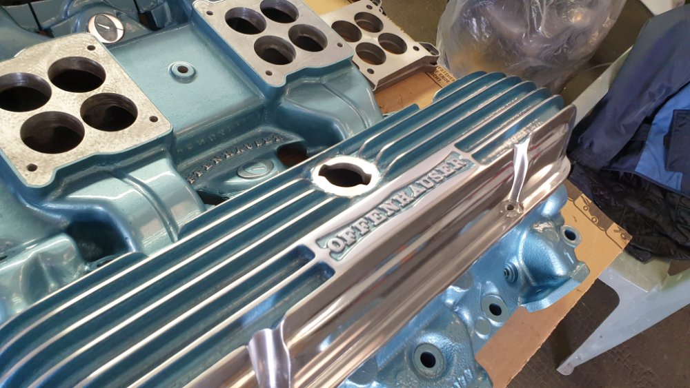 Les Pontiac de cette époque avait des Carter AFB, et cela jusqu'a la fin des années 60'. La raison pour laquelle Offenhauser a choisi un montage en WCFB en 1962, m'échappe totalement. Surtout que les photos du kit proposé est équipé d'AFB !!! Oui je vais mettre un joint entre chaque pièce, de préférence plutôt épais. Tu as raison toutes ces couches vont augmenter la hauteur des carbus. Mais pas de souci, j'ai prit soin de ne pas dépasser les un pouce de hauteur finale. Le carburateur avant est le plus proche du capot, bonheur des voitures des années 50' il reste encore suffisamment de place.