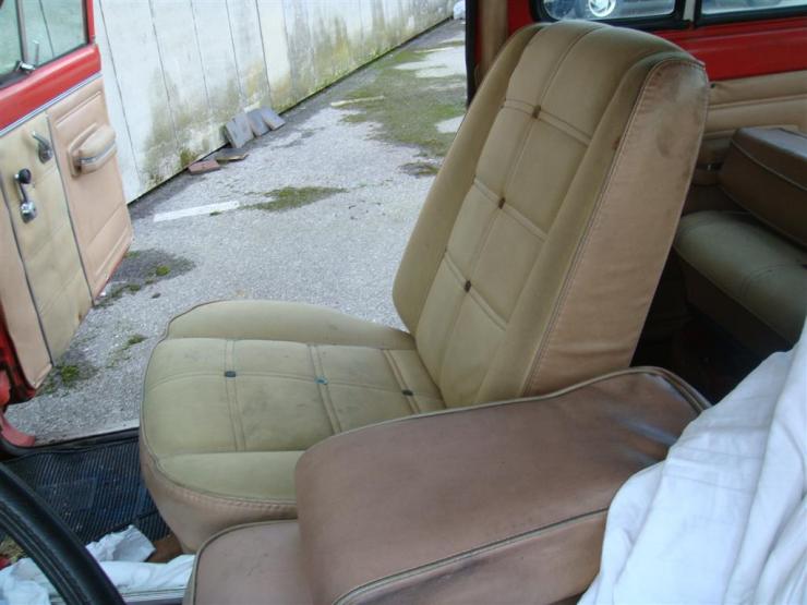 La sellerie? Banquette arrière neuve. Les assises des sièges avants sont bonnes, en revanche les dossiers sont archi-cuits: 35 ans de soleil en pleine gueule, aucun soin...toutes les coutures sont éventrées, la mousse apparente...bref, c'est roots...mais ça tombe bien j'adore, ça lui donne un peu de cachet...je maintiens qu'un FSJ en état showroom ça ne m'intéresse pas. :cigar: