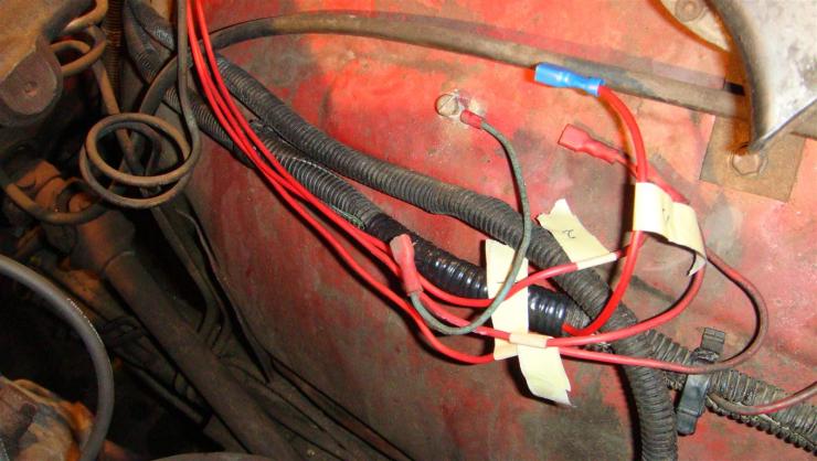 -J'ai sorti des gaines fendues tout le câblage de l'avant du véhicule et trouvé encore plein de bricolages merdiques. J'ai tout foutu loin, mis du neuf et étamé, c'est propre et net. J'ai seulement laissé deux triples pontages positifs qui étaient plombés puis étamés proprement...de toute façon j'aurais pas fait mieux à l'étain. En revanche j'ai lourdé tous les vieux scotch et isolé à la toile isolante HT.