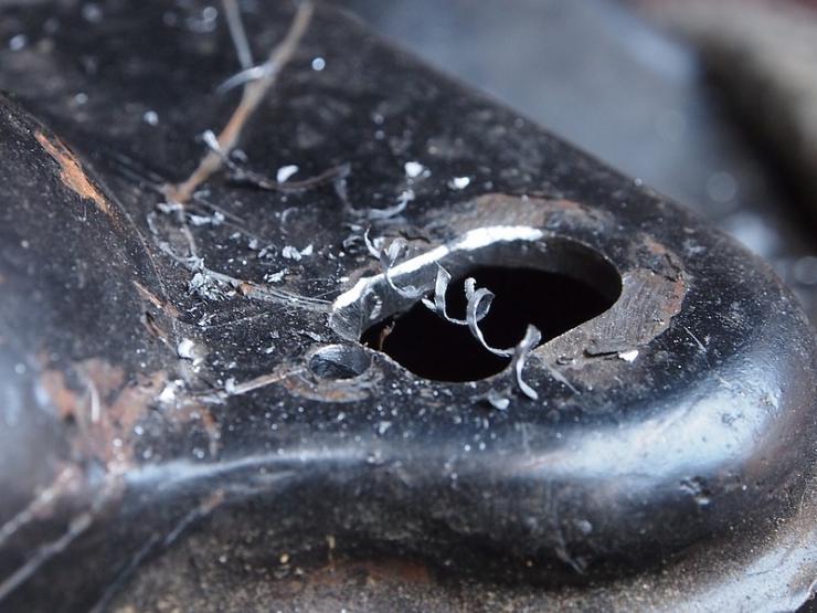 Une fois tout bien calé, la "partie inutile" du trou sera rebouchée à la soudure pour éviter que tout bouge à nouveau au premier ralentisseur.