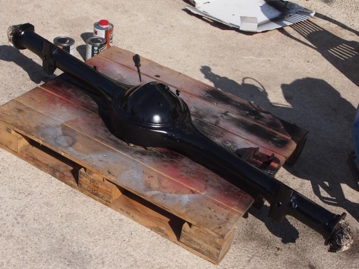 Pour faciliter la peinture, j'ai séparé le différentiel des trompettes de pont. En effet, les trompettes, en tôle épaisse lisse, seront mieux finies avec une peinture au pistolet.