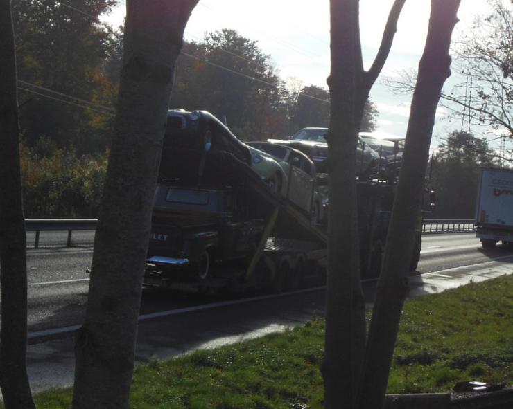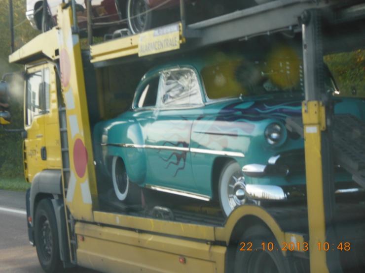 Zitoune Posté(e) le 22 octobre 2013 Signaler Posté(e) le 22 octobre 2013 Je ne trouve plus le sujet "américaines vu dans le rue...ou sur les route" .Bref, le coup du bug sans doute.... Ceci dit, ce matin en revenant d'une intervention sur un chantier, que vois je plus moins devant moi? Un camion de transport de voiture et en gros sur la benne d'un pick up "CHEVROLET". HAAaaaaaa.....quoi c'est ça? je prends l’appareil photo et tente quelques photos. Le soleil, le fait de rouler et de le doubler je trouve ça pas top. Je m’arrête sur une aire de repos quelques kilomètres plus tard pour le prendre lors de son passage devant moi. Et je le shoot. Déjà mieux mais il carbure le routier, deux photos seulement. Puis je repart et m’apprête à le doubler une seconde fois.Ce coup ci je prépare mieux mon coup et fais ce que je peux. Voici les photos: Les photos ne sont pas terrible du tout , mais j'ai fait comme j'ai pu. Je ne connais pas tous les modèles, si ça vous amuse cherchez. Citer