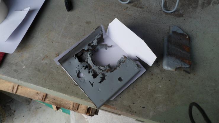 sebastien 01 Posté(e) le 1 novembre 2016 Auteur Signaler Posté(e) le 1 novembre 2016 bonjour a tous , hier j'ai enfin fini de sabler la face avant et je l'ai passer en après phosphatant ainsi que d'autre pièces ( je mettrait les photos ce soir ) et ce matin je vais commencer a découper et former les tôle mais j'aurais une question . je ne sais pas si vous voyait ce que je veut dire mais sur ma tôle ou il y a les silentbloc il y a un gros trou ( cercle rouge sur la photo ) j'aimerai savoir si d'origine le diamètre du trou était plus proche du cercle vert ou bleu ? ou encore plus petit ? merci d'avance Citer
