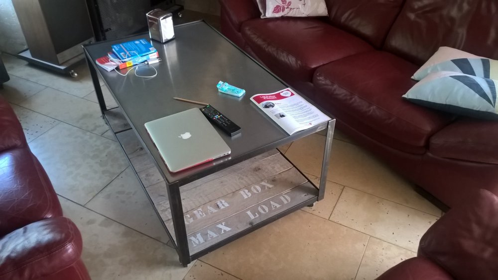 exNISSAN Posté(e) le 14 décembre 2020 Signaler Posté(e) le 14 décembre 2020 il y a 41 minutes, pat060 a dit : Si tu as d'autres photos à partager dans ce topic artistique, je ne sais pas pour les autres, mais perso je suis preneur. Avec plaisir , alors quelques unes des tables basses que j'ai faites à base de cornière acier et selon les dimensions / souhaits des destinataires ; La nôtre je lui ai fait le dessus en inox (j'avais pu acheter un lot de chutes ), pour une belle soeur elle voulait de la planche à palette (décapée , javelisée puis une peinture très diluée avec des inscriptions au pochoir ) .Pour ma belle-fille et mon fils , j'ai eu un putain de cahier des charges (les gamins sont pleins d'idées quand c'est Papa qui réalise ) ils la voulaient "carrée avec un granit incrusté pour couper le saucisson dessus pour les apéros et une niche sur 2 angles pour ranger les telecommandes qu'on paume tout le temps " . Le carré de granit , c'est la chute de la découpe de leur plaque de cuisson quand ils ont fait leur cuisine , et j'ai taillé mes bouts de ferraille autour . Après les tables basses , je suis parti à faire une table de cuisine et des bureaux ,faut que je retrouve des photos . Anecdote qui fait chaud au coeur , une petite nièce faisant médecine avait eu de bons résultats pour sa première année , on l'appelle pour la féliciter et on lui glisse à l'oreille qu'on lui enverrait un petit chèque pour améliorer son quotidien d'étudiante .La gamine refuse ....et me glisse : "par contre Tonton si tu pouvait me faire un bureau de style industriel ...." je lui ai demandé les dimensions souhaitée et j'ai mis ça à mon planning Citer