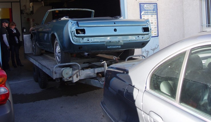 Phil Posté(e) le 16 novembre 2010 Auteur Signaler Posté(e) le 16 novembre 2010 Bon, il a repris le capot et le coffre, et lustré les quelques coups de poussière, depuis une semaine c'est fini Aujourd'hui le grand jour, il y avait (enfin) un véhicule pour tirer le plateau et hop Mémé nous a fait un petit gag pour monter sur le plateau (en marche arrière because rien pour tenir le capot moteur...) : la boîte manque d'huile, donc la marche arrière patine jusqu'au moment où elle accroche et où la voiture monte d'un coup en arrière sur les rampes, elle a fait 2 mètres avant que je trouve la pédale de frein, heureusement qu'elle était bien droite au départ . Et depuis ce midi, elle est dans mon garage, yapukà remettre les morceaux qui remplissent les cartons Citer